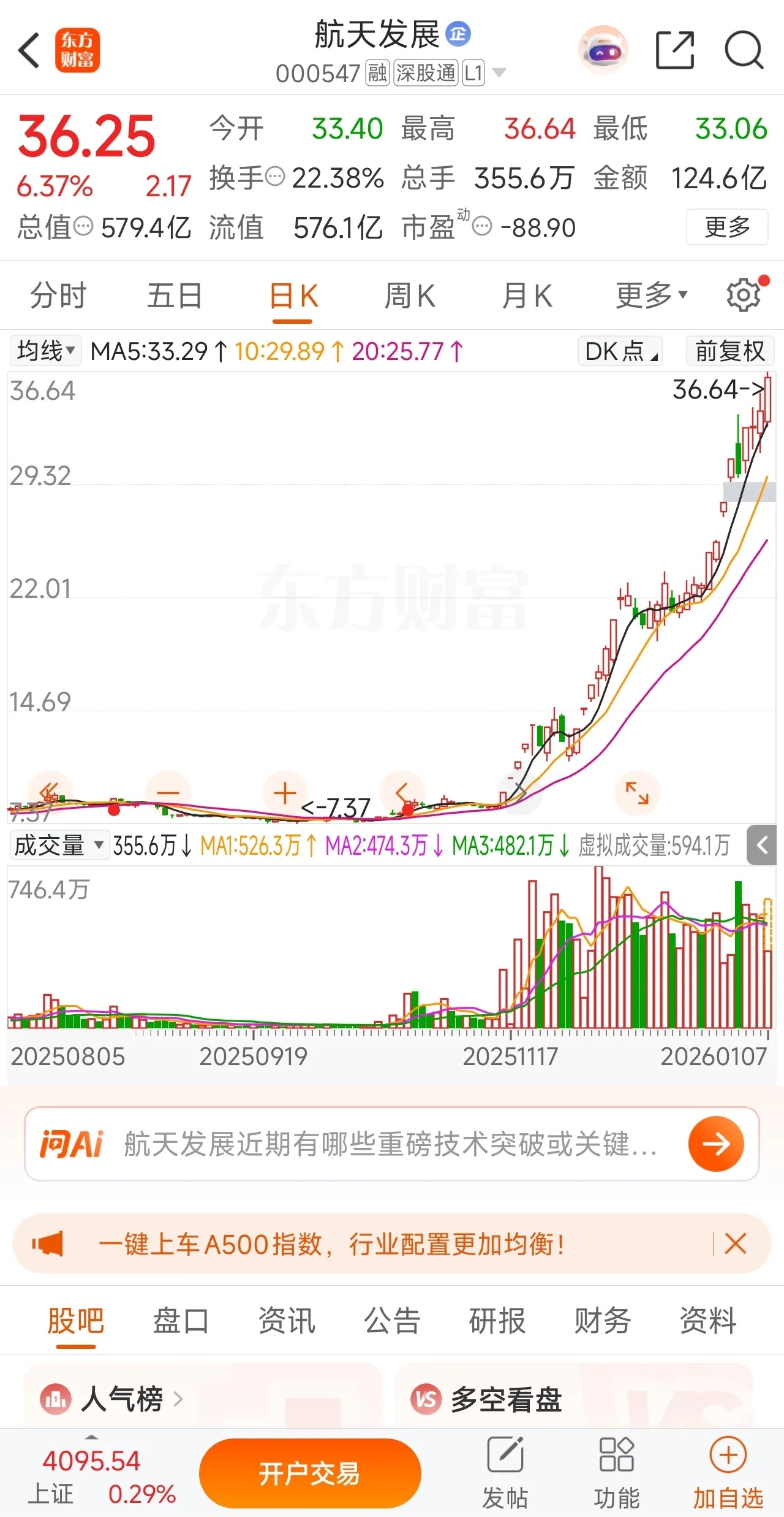 航天发展两月涨幅高达5倍,这涨幅太震撼了,目前来看航天发展才是商业航天的龙头,其