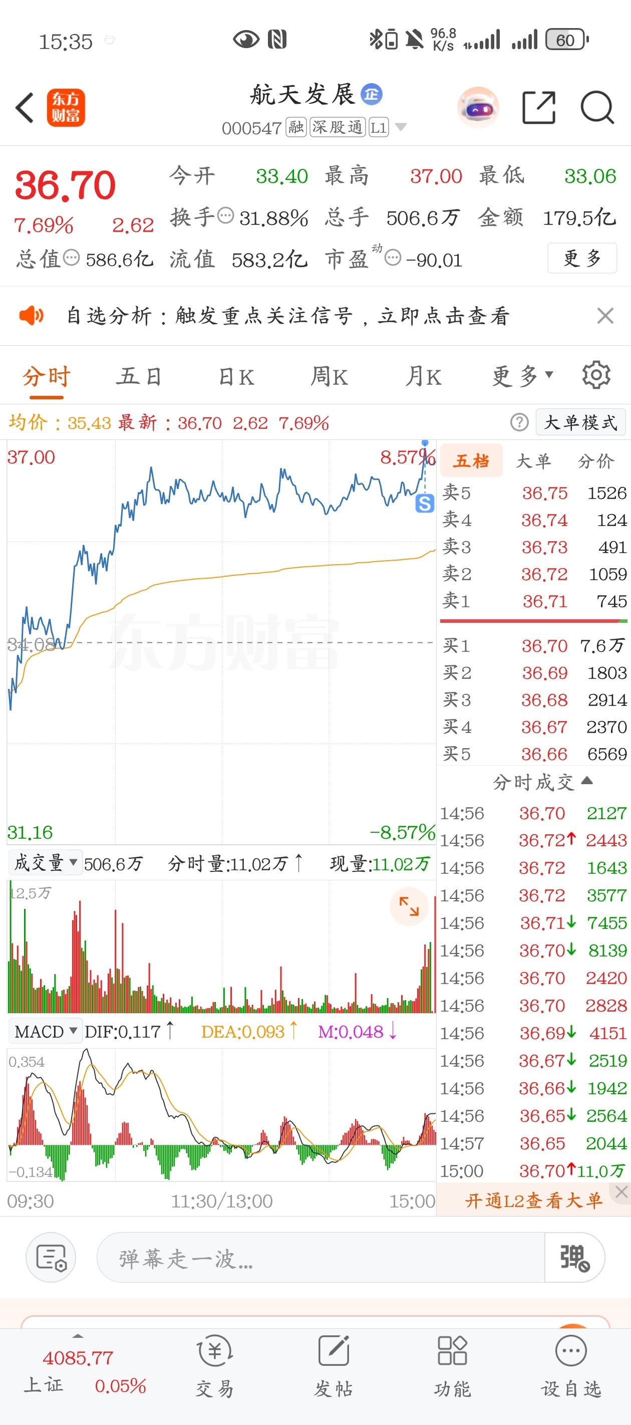 $航天发展(SZ000547)$ 明天又要卡异动了,明天看看水下有没有机会接