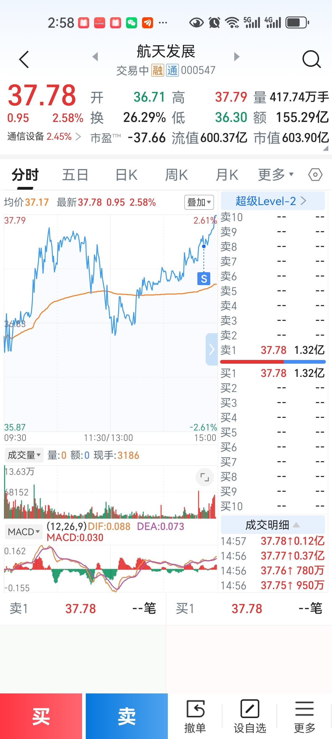 $航天发展(SZ000547)$ 我尽力了 全清了 周一再接回来 不知道到底是谁在买啊 真服了