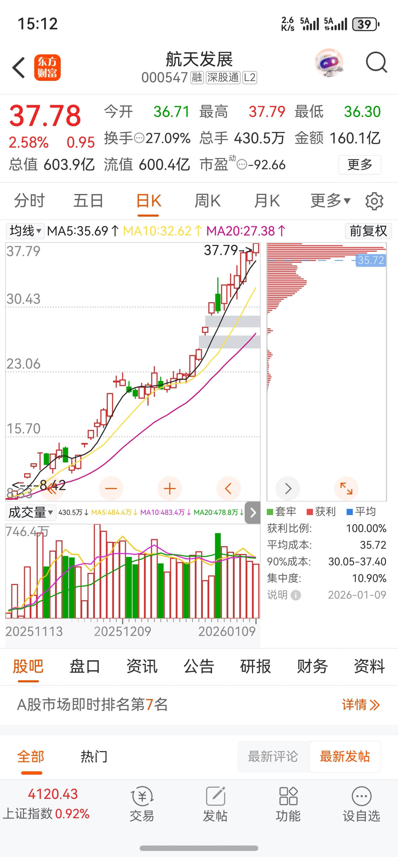$航天发展(SZ000547)$ 这筹码峰看着都吓人,都是散户高位接盘。下面获利主力这两天跑了很多。周一大概率低开震荡