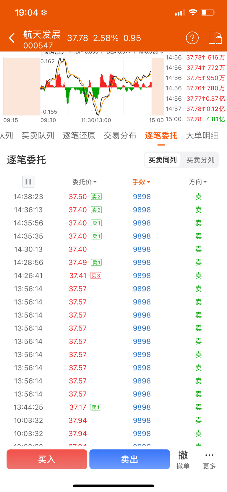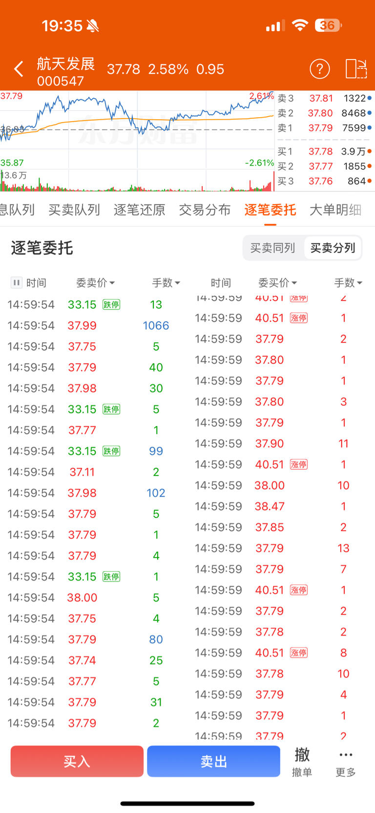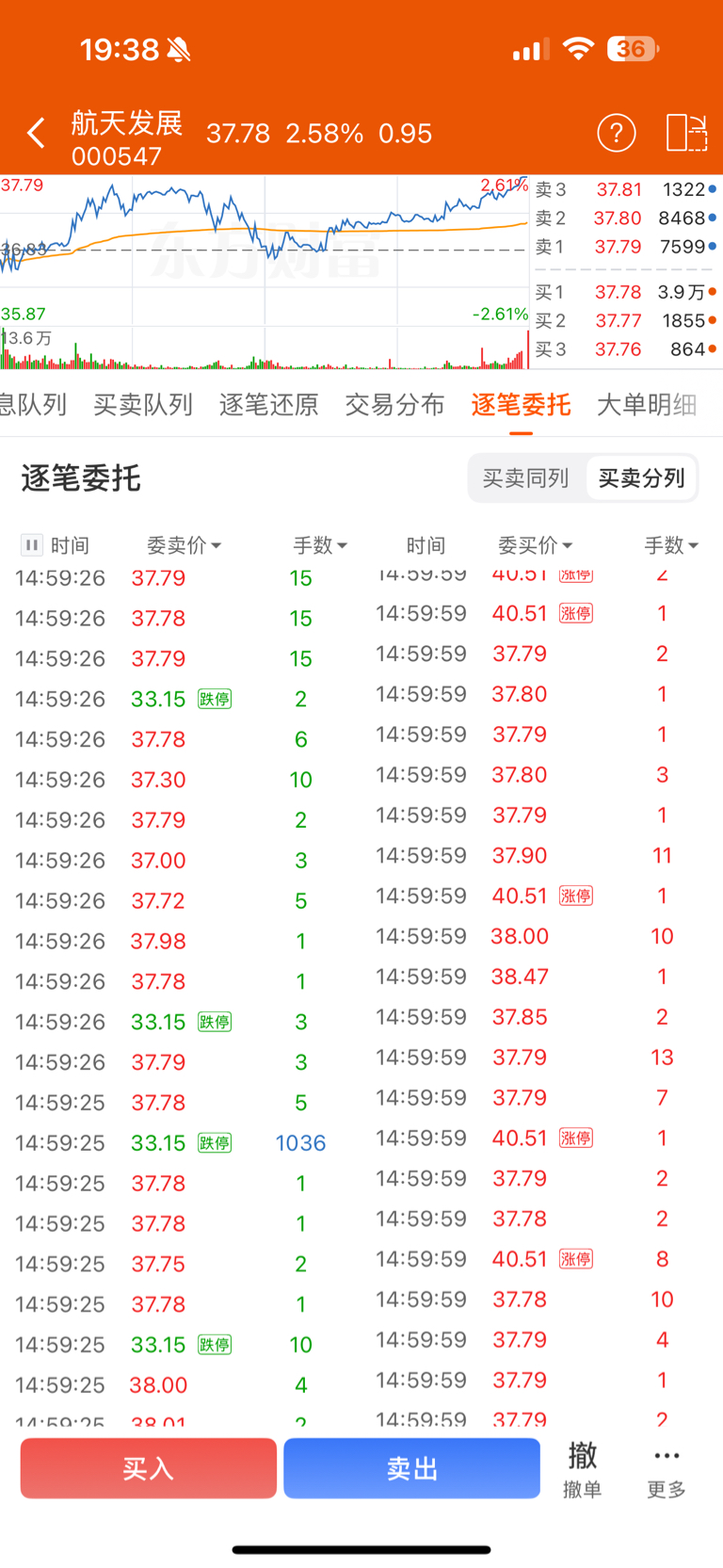 $航天发展(SZ000547)$ 航发不愧是总龙,不但是主力大佬在辛苦压盘,连里面的小散都格局不一样,为了控异动,直接砸跌停。虽然手上没啥钱。持仓不多,但是也行动了,每一个跌停卖单对应的都是止盈,明明白白密密麻麻的人心齐啊!希望周一航发可以扛过去!!加油!