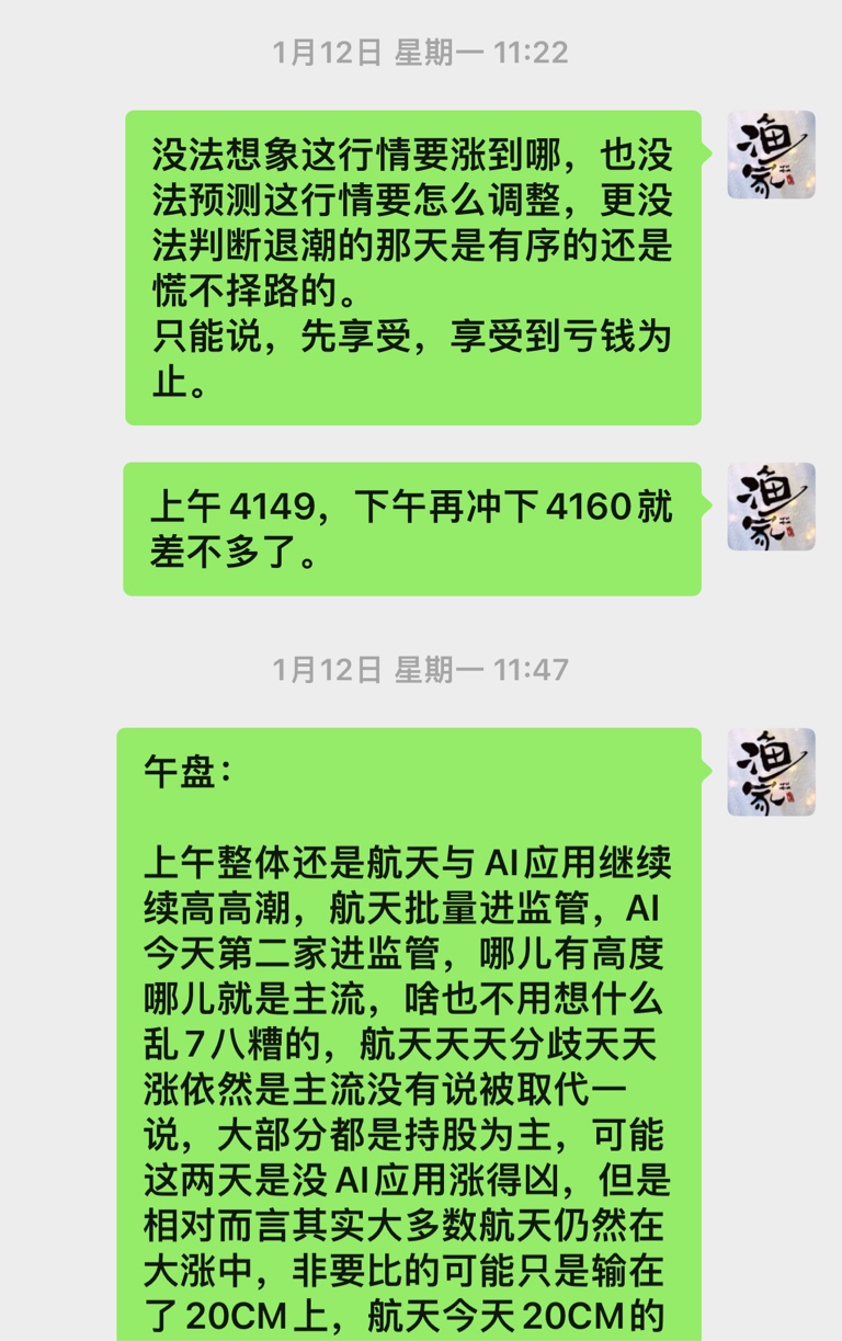 事实来看上午调整的航天下午都来了,通宇通讯也新高了,西部也新高了,弱点的抄底的都是大肉了,做T的是利润最大化,不做T也能跟着吃肉,不象其他方向太随机的轮动,航天啥时候结束不清楚,可能航天发展跌停的时候看会不会结束吧,说了一个多月航天,天天吧啦,就算你躺着最少都翻倍了。路过吃肉的记得点赞鼓励下。