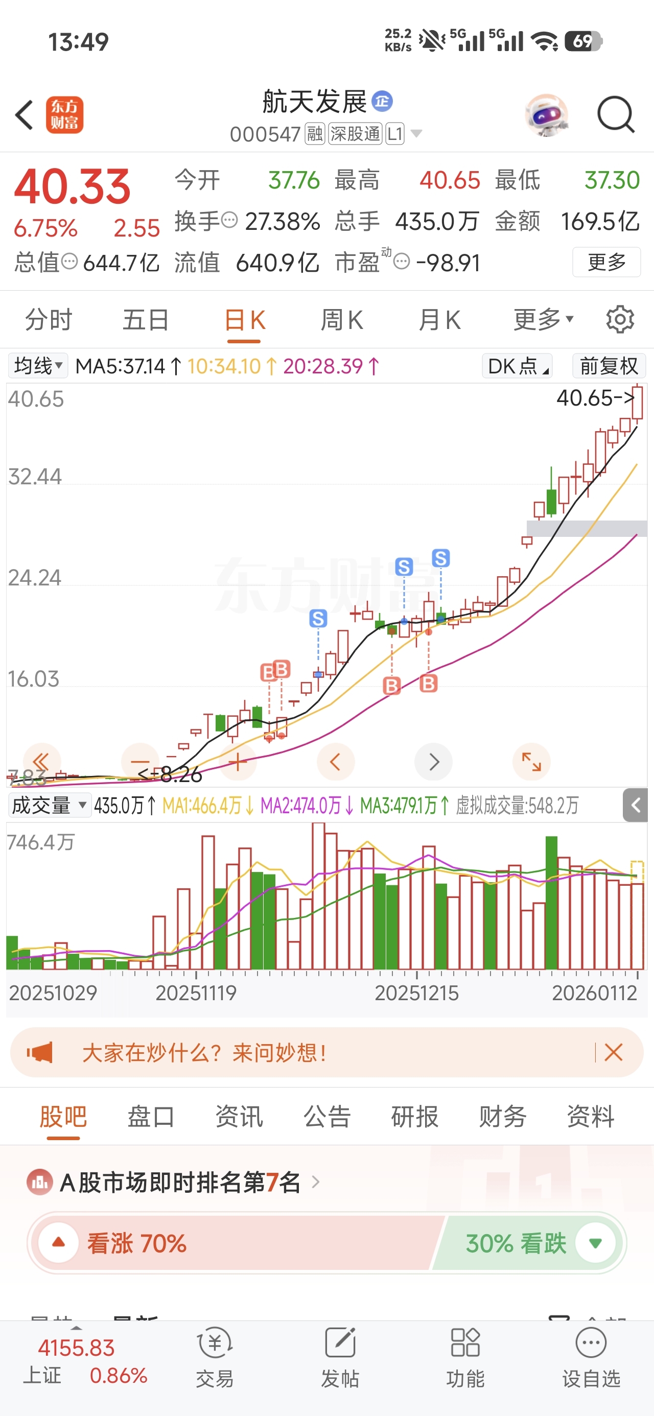 $航天发展(SZ000547)$ 曾经有一份发财的机会放在我面前我没有珍惜