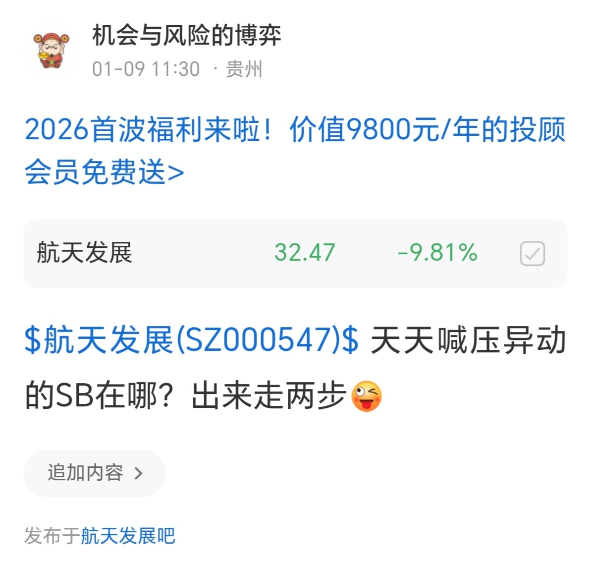 $航天发展(SZ000547)$ 9号都说小群跑路,有的股友说小群血亏怒砸几个亿帮股友们压异动