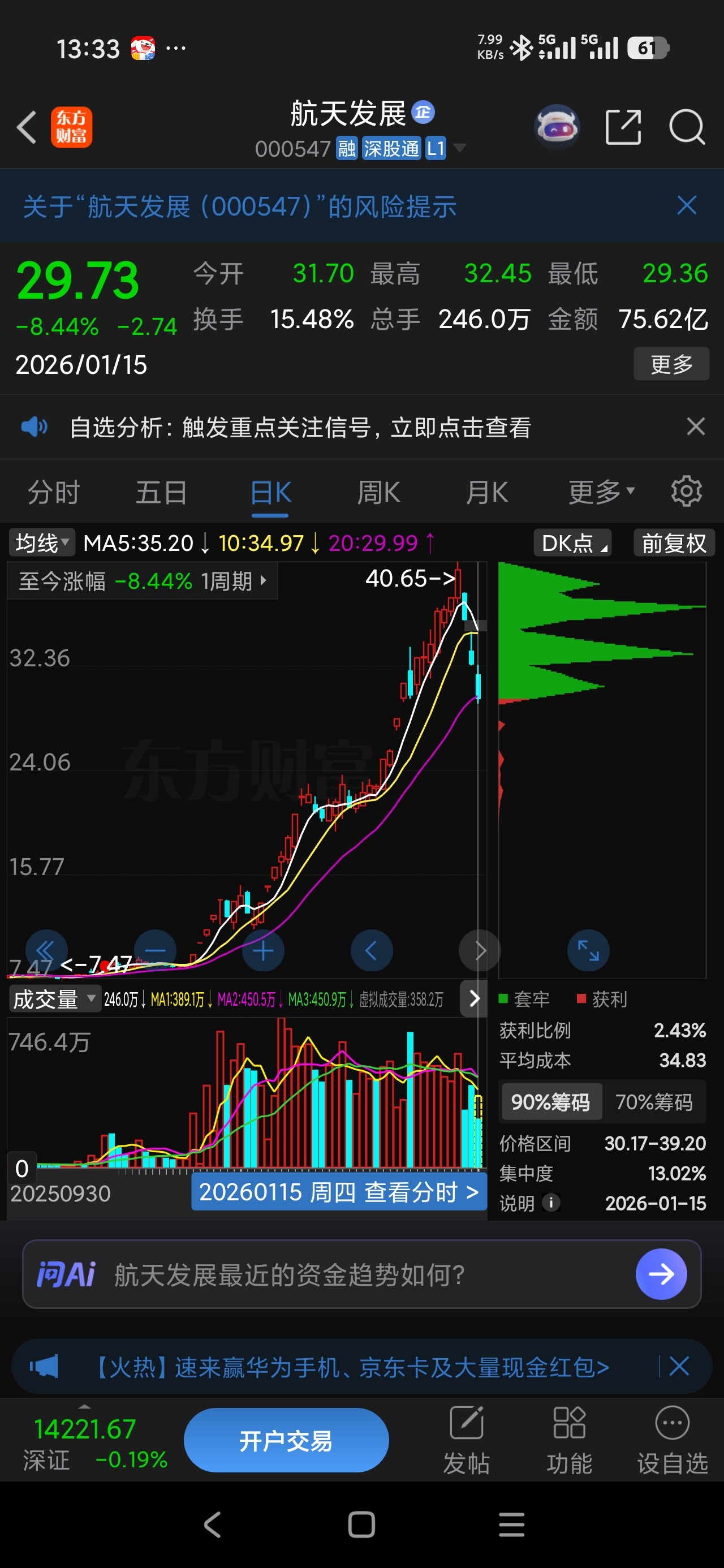 最近两三天的筹码峰越看越不对劲,都连续跌9%-10%了,筹码峰还那么整齐,不像是