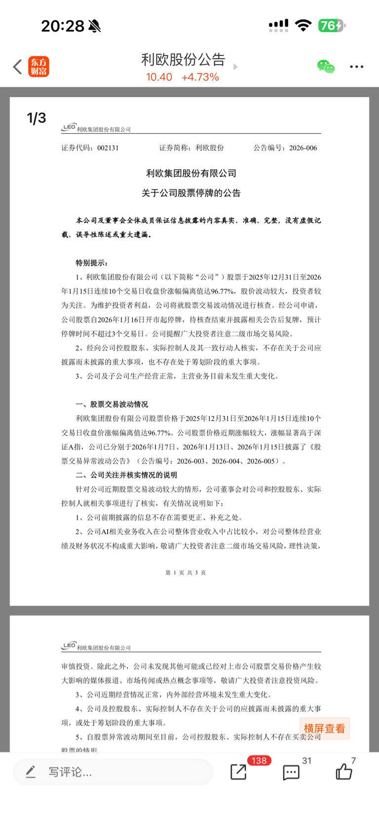 温馨提示: 1.根据《证券法》规定,禁止编造、传播虚假信息或者误导性信息,扰乱证券市场;2.用户在本社区发表的所有资料、言论等仅代表个人观点,与本网站立场无关,不对您构成任何投资建议。用户应基于自己的独立判断,自行决定证券投资并承担相应风险。《东方财富社区管理规定》