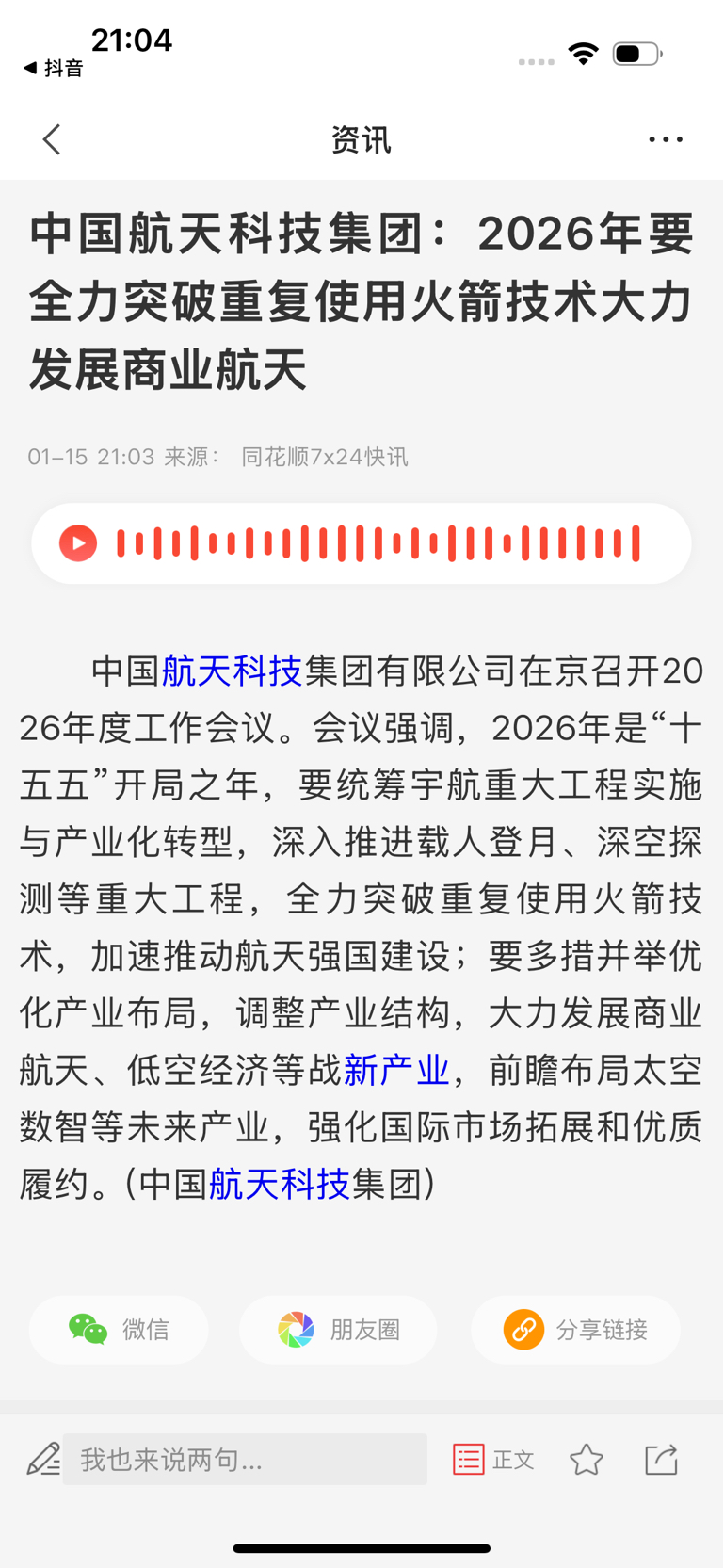$航天发展(SZ000547)$ ai那边利欧进去,航发也跌出来空间了,再叠加晚上利好消息催化,明天修复问题不大,明天商业航天修复主要看龙头航发和航天机电的表现了,如果航发止跌修复,航天机电涨停,那么商业航天板块后排也会止跌,下周走双头见顶或者震荡企稳