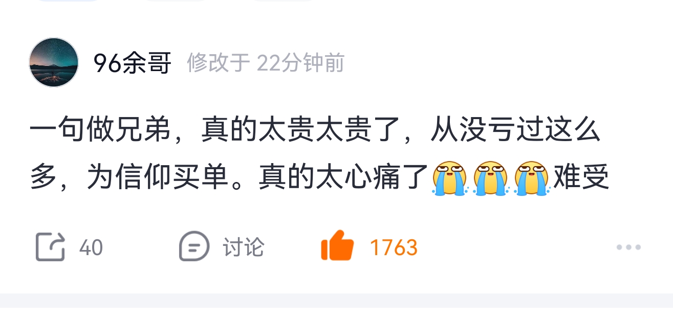 温馨提示: 1.根据《证券法》规定,禁止编造、传播虚假信息或者误导性信息,扰乱证券市场;2.用户在本社区发表的所有资料、言论等仅代表个人观点,与本网站立场无关,不对您构成任何投资建议。用户应基于自己的独立判断,自行决定证券投资并承担相应风险。《东方财富社区管理规定》