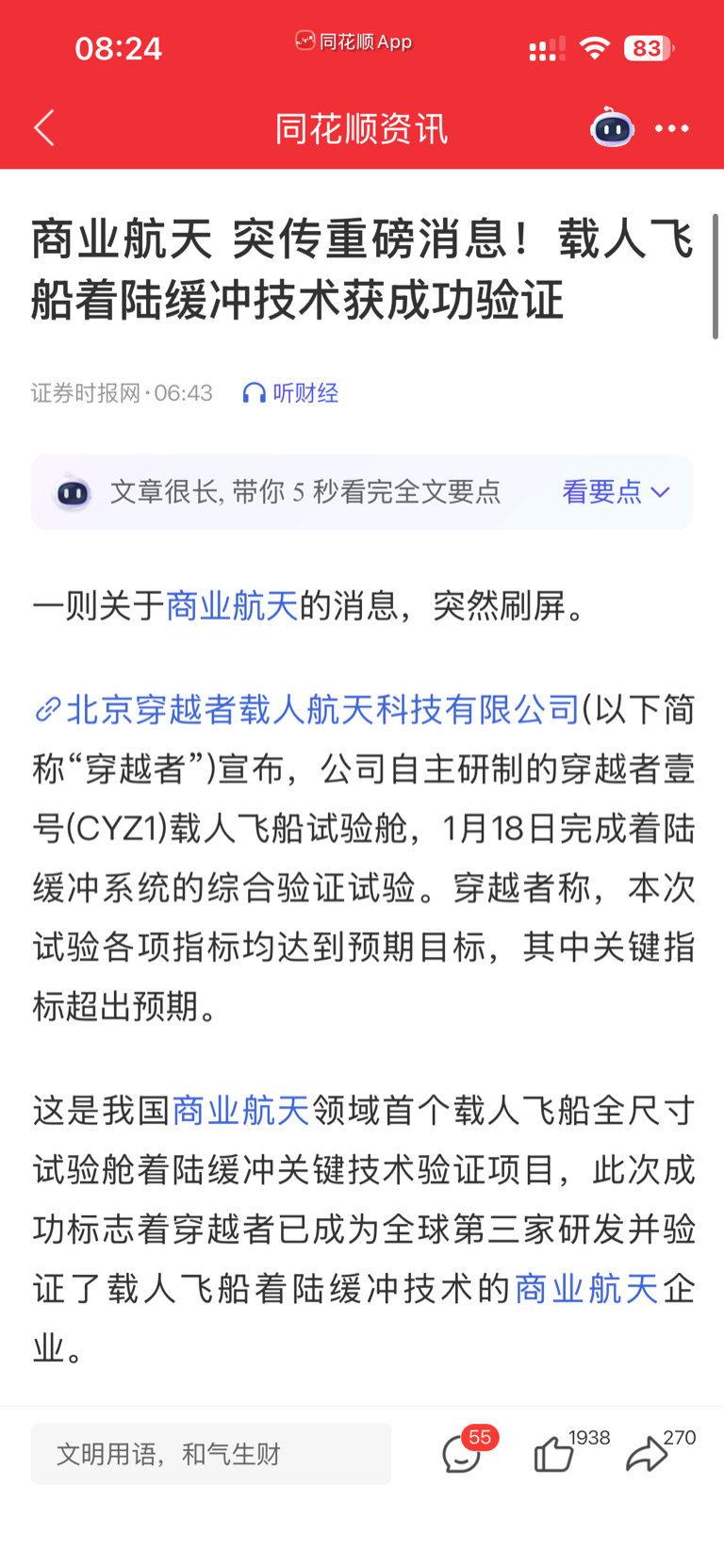 $航天发展(SZ000547)$ 同花顺头条新闻