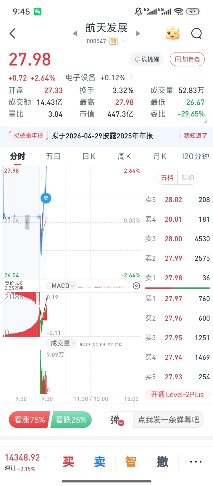 27.97满足第一波涨幅,减了再看有没有二波机会