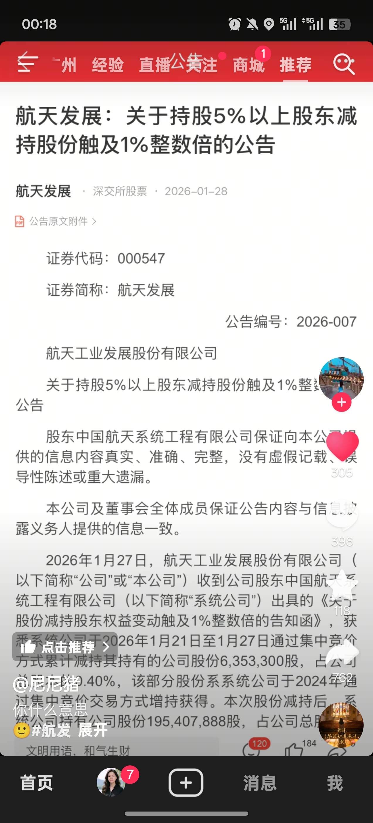 $航天发展(SZ000547)$ 给兄弟们发个利好