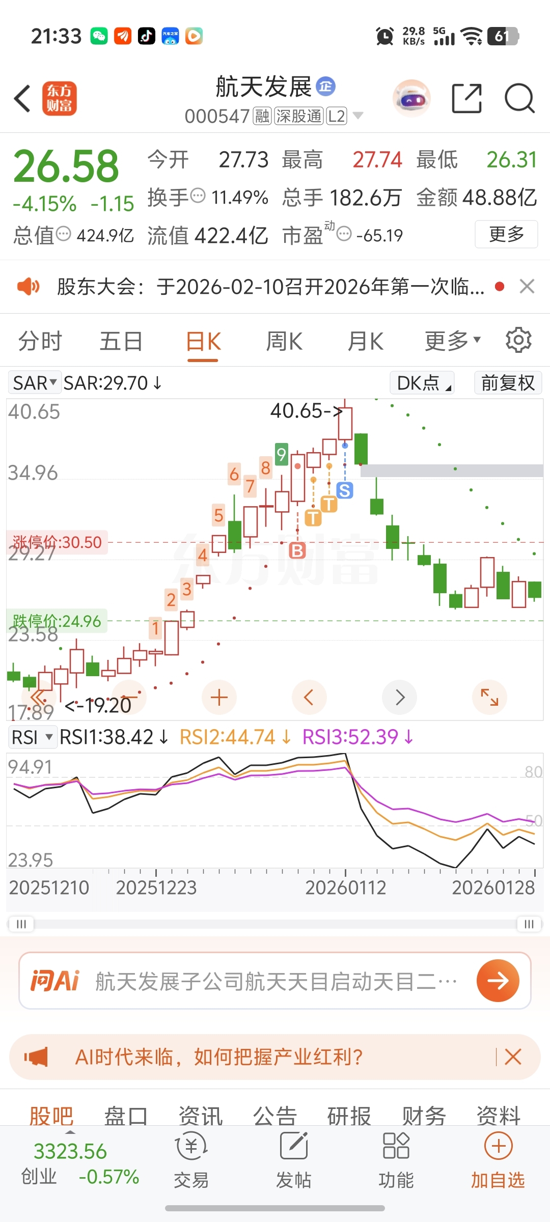 $航天发展(SZ000547)$ 没吃到也没亏到