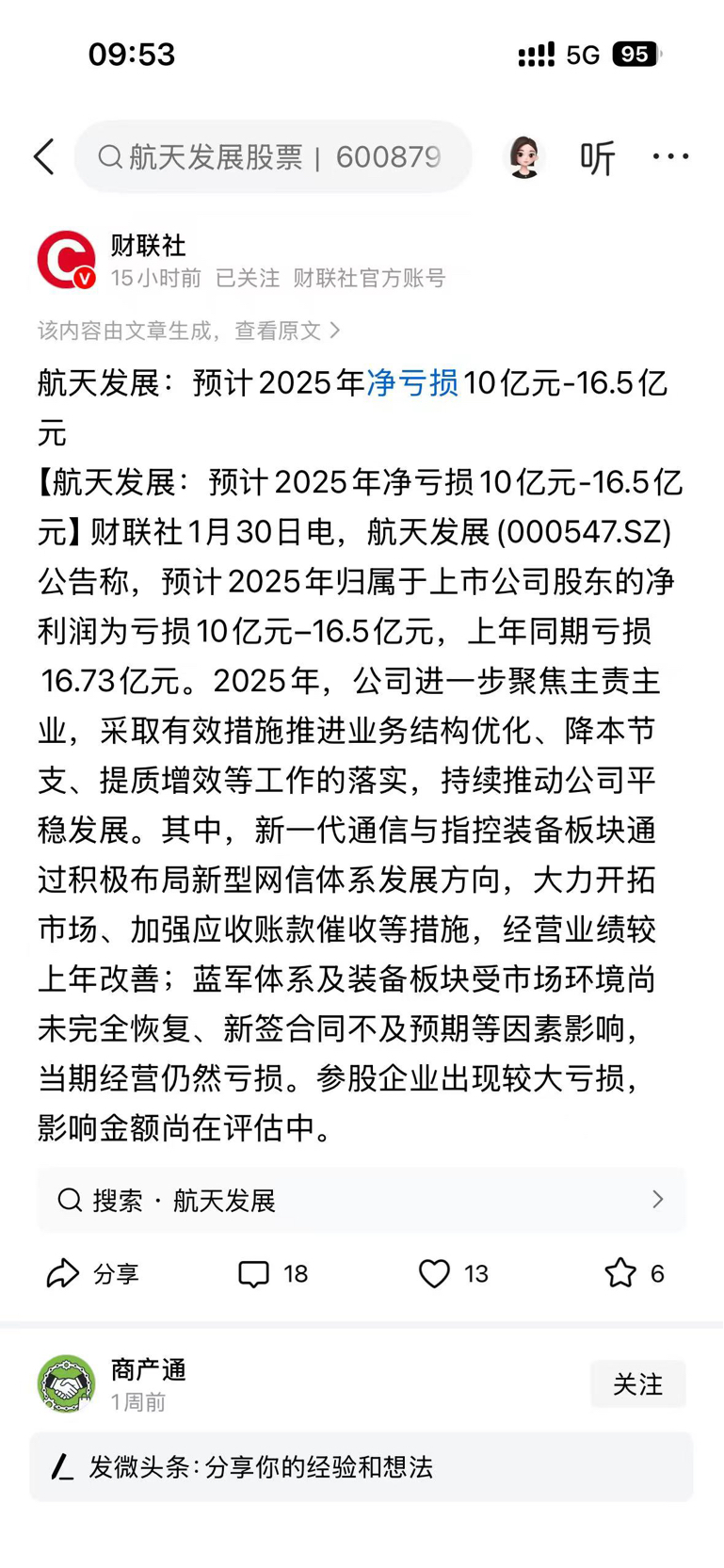 $航天发展(SZ000547)$ 重大利好商业航天,26年扭亏为赢,估计看到350元,长期价值投资必有回报,千万别下车,股价严重低估