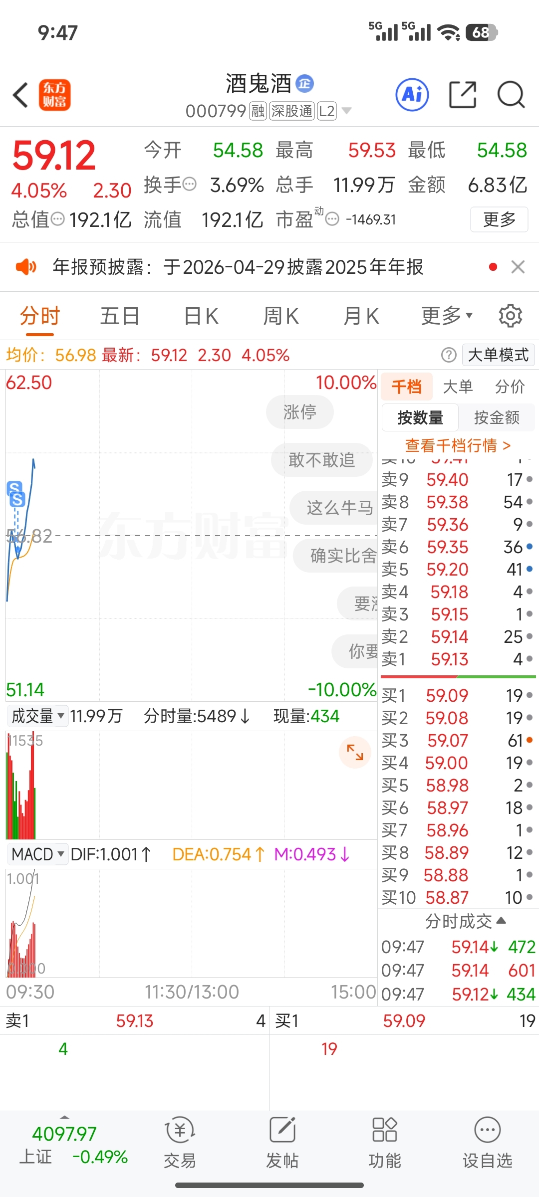早盘卖了酒鬼酒追的你,我真是个天才交易员!