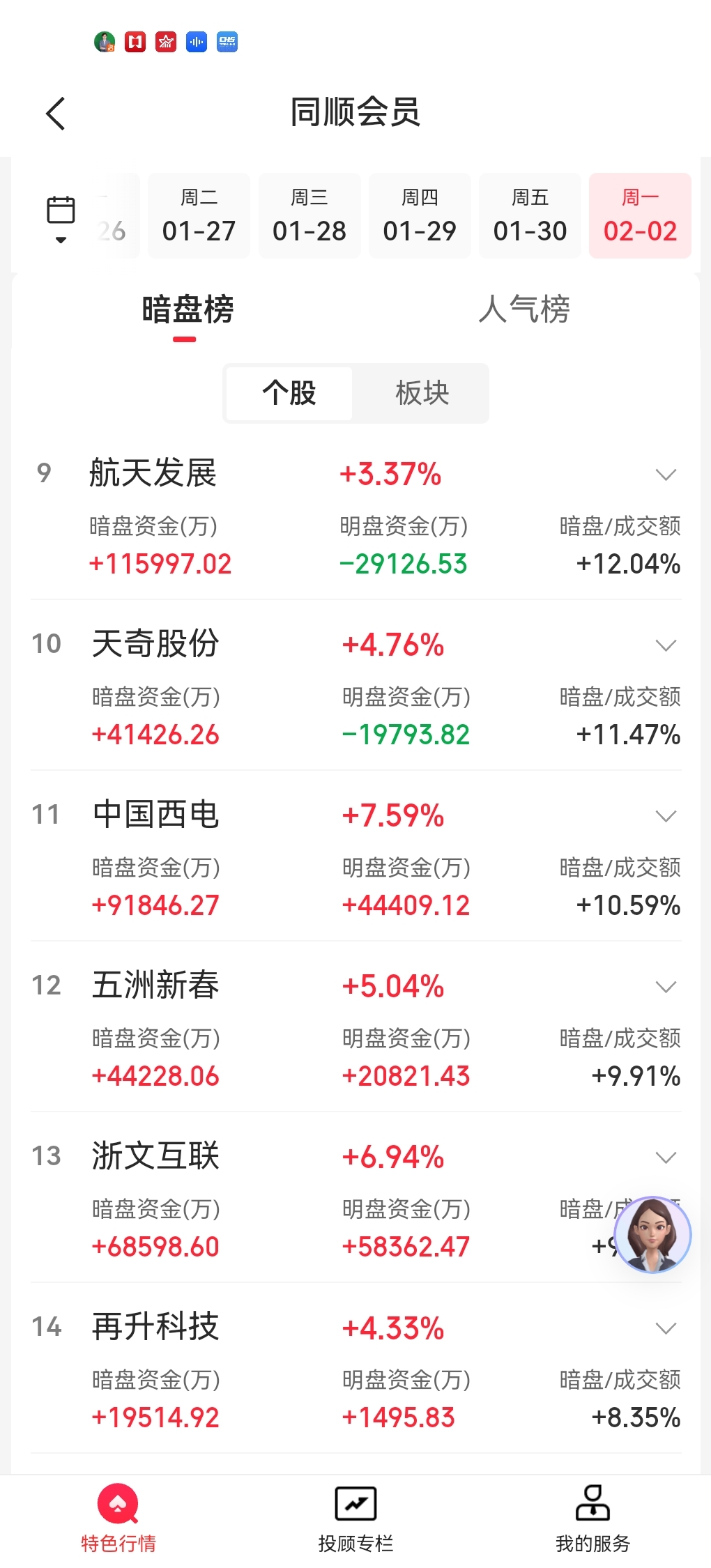 航天发展暗盘