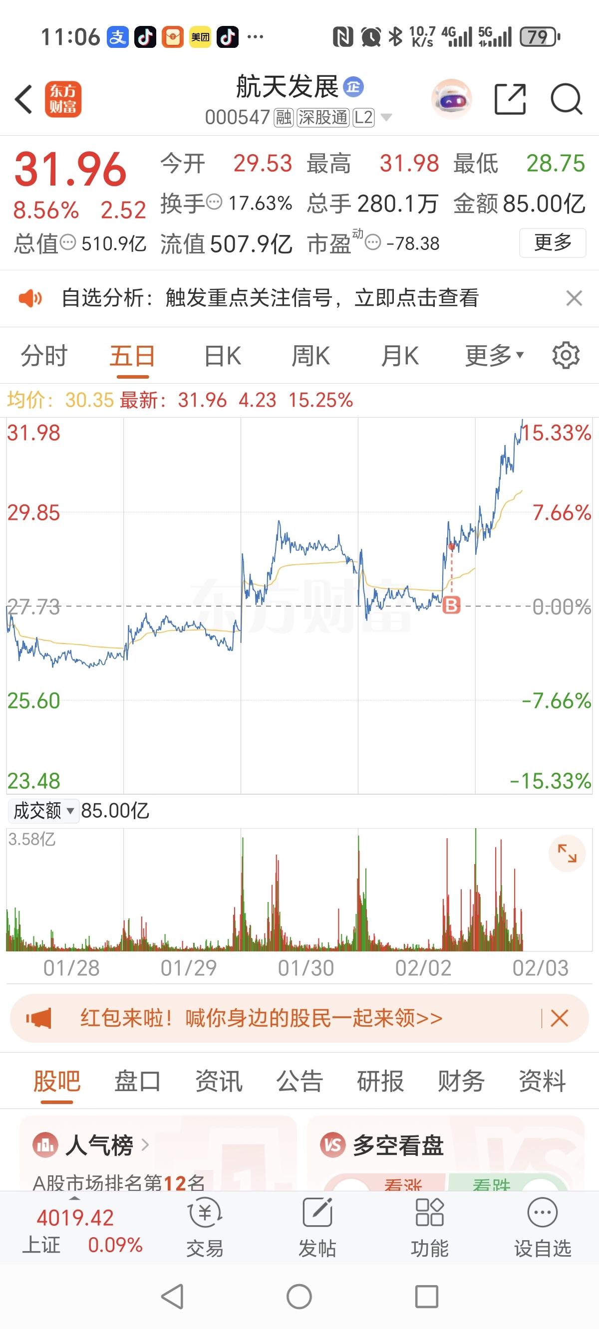 $航天发展(SZ000547)$ 唉 后悔没把电子的出完加进来