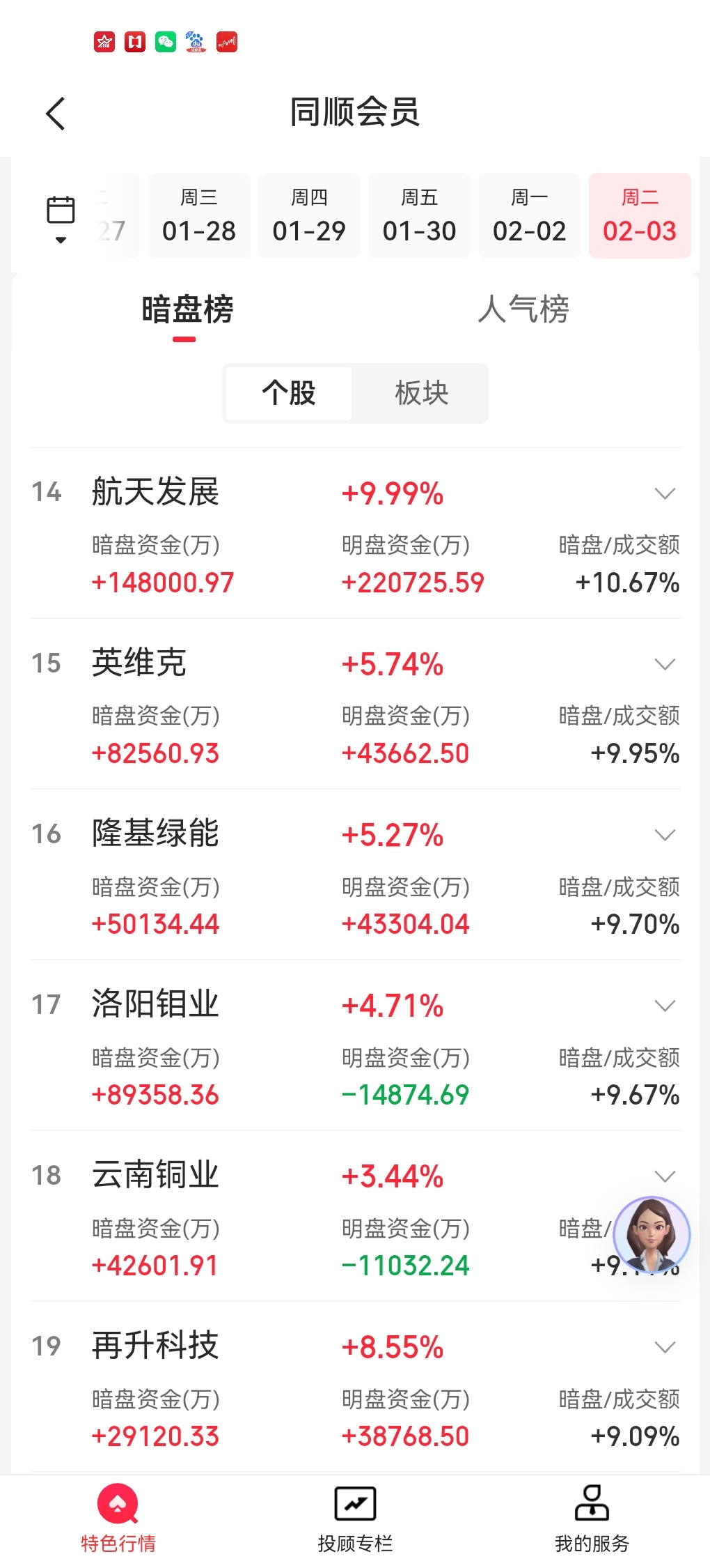 航天发展暗盘