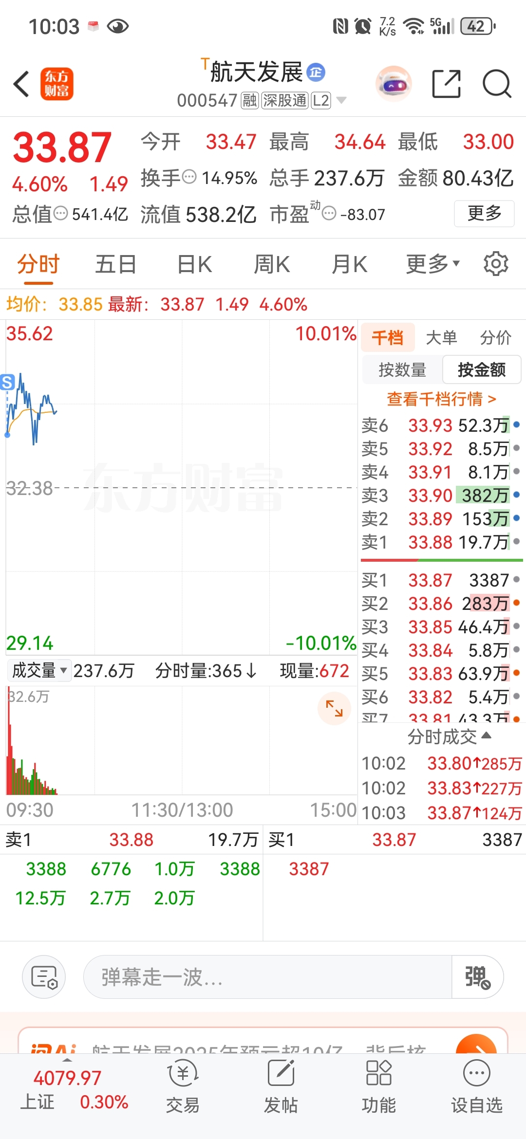 $航天发展(SZ000547)$ 卖在最低点