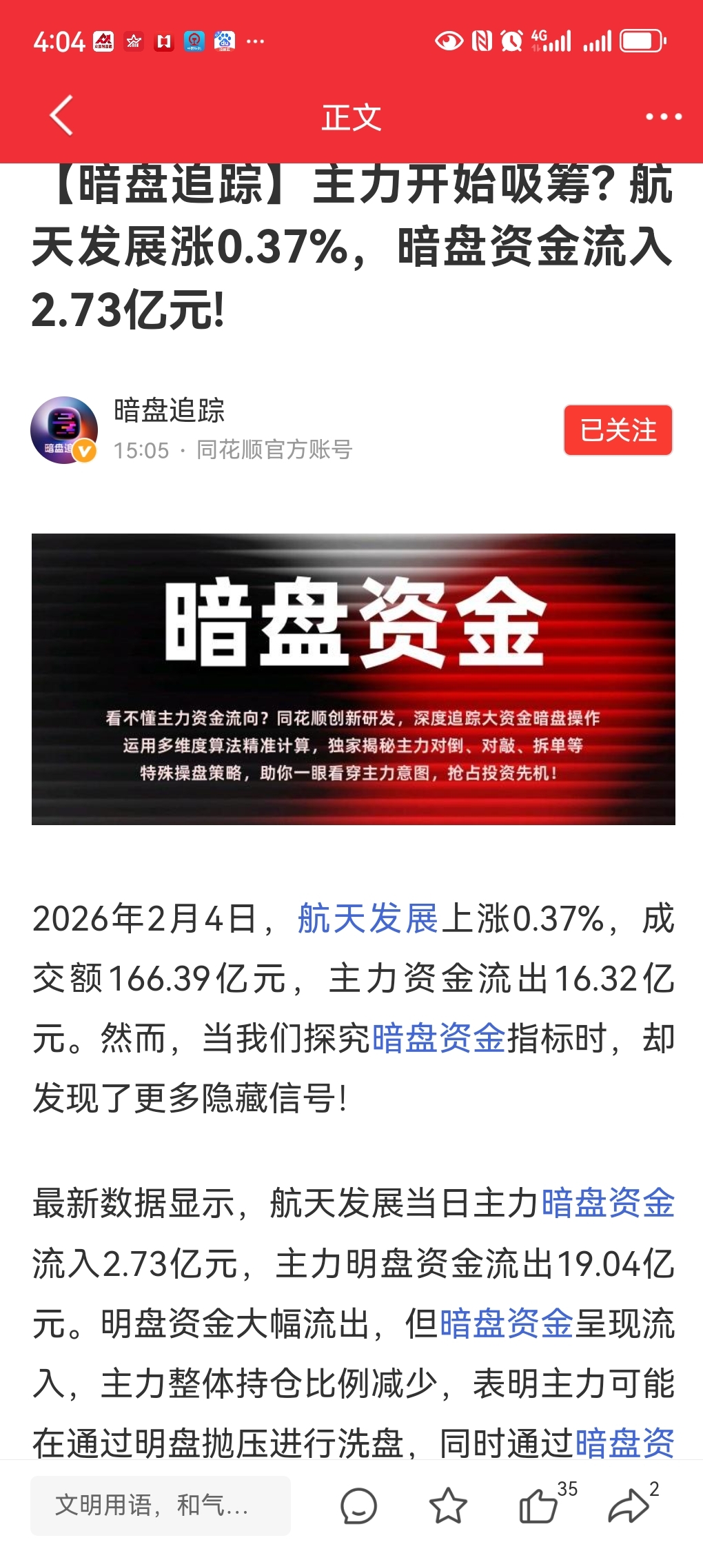 航天发展暗盘