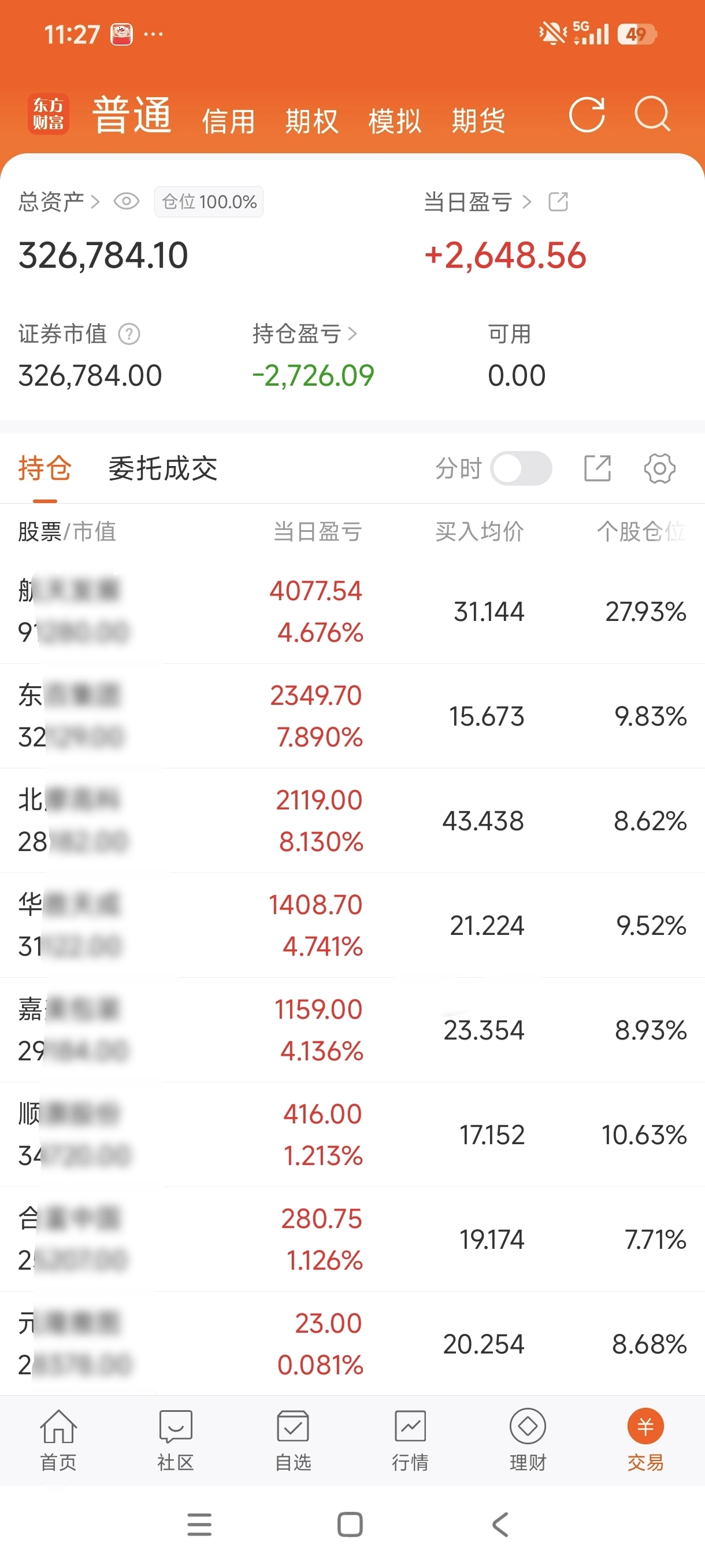 起起落落是常态,错了不死扛,低开不看空。开盘亏8000,现在红了#炒股日记# #复盘记录# #实盘记录# $航天发展(SZ000547)$ $利欧股份(SZ002131)$ $北摩高科(SZ002985)$
