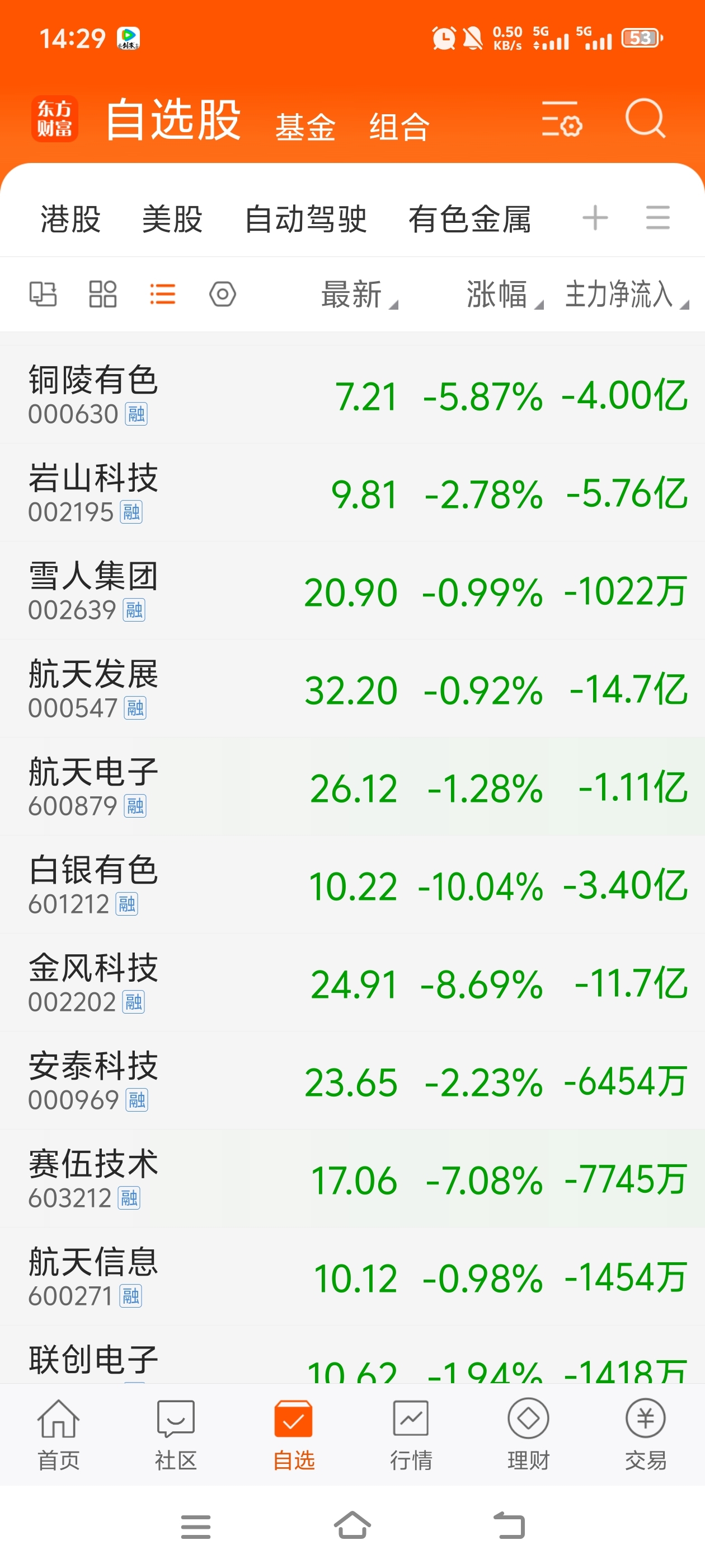 $航天发展(SZ000547)$ 哇,自选股,还有的持仓股绿油油吧,比韭菜都绿