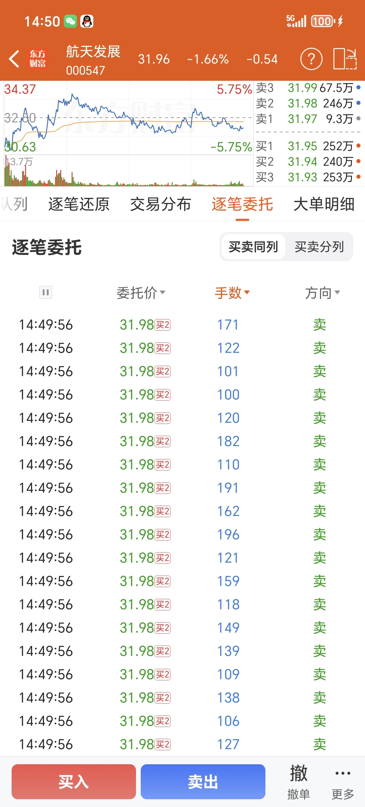 $航天发展(SZ000547)$ 只要一拉上去,就刷刷的砸,从早上到收盘一直这样,谁有这么多货