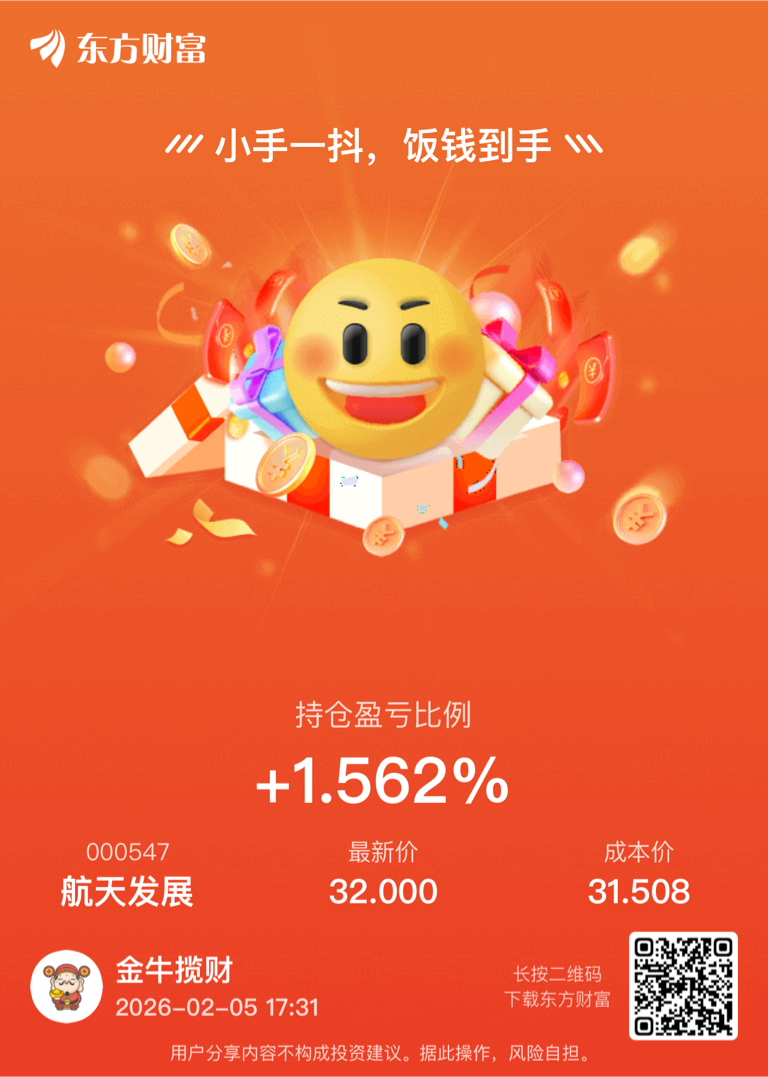 $航天发展(SZ000547)$ 不多不少赚钱就好