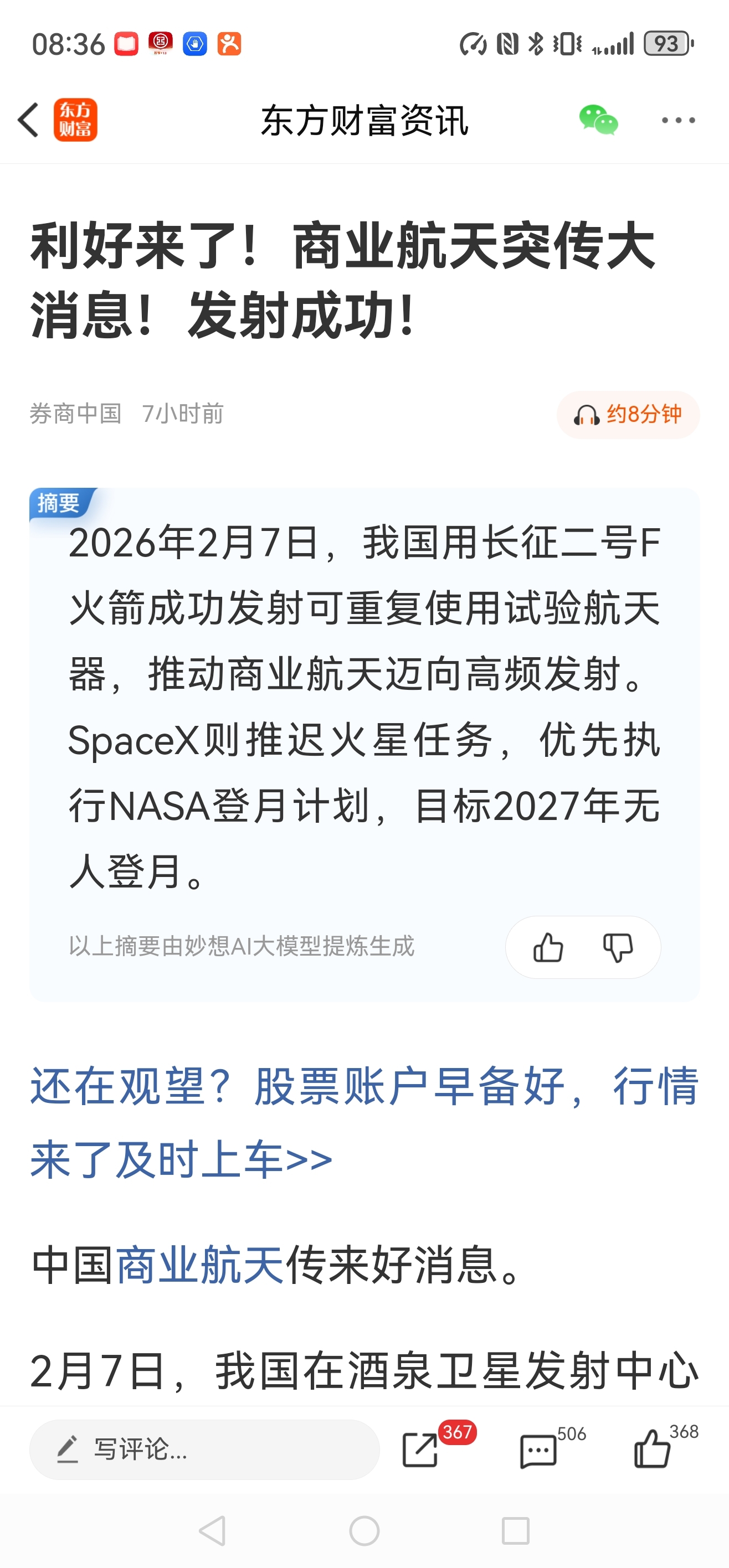 $航天发展(SZ000547)$ 成功了,里程碑