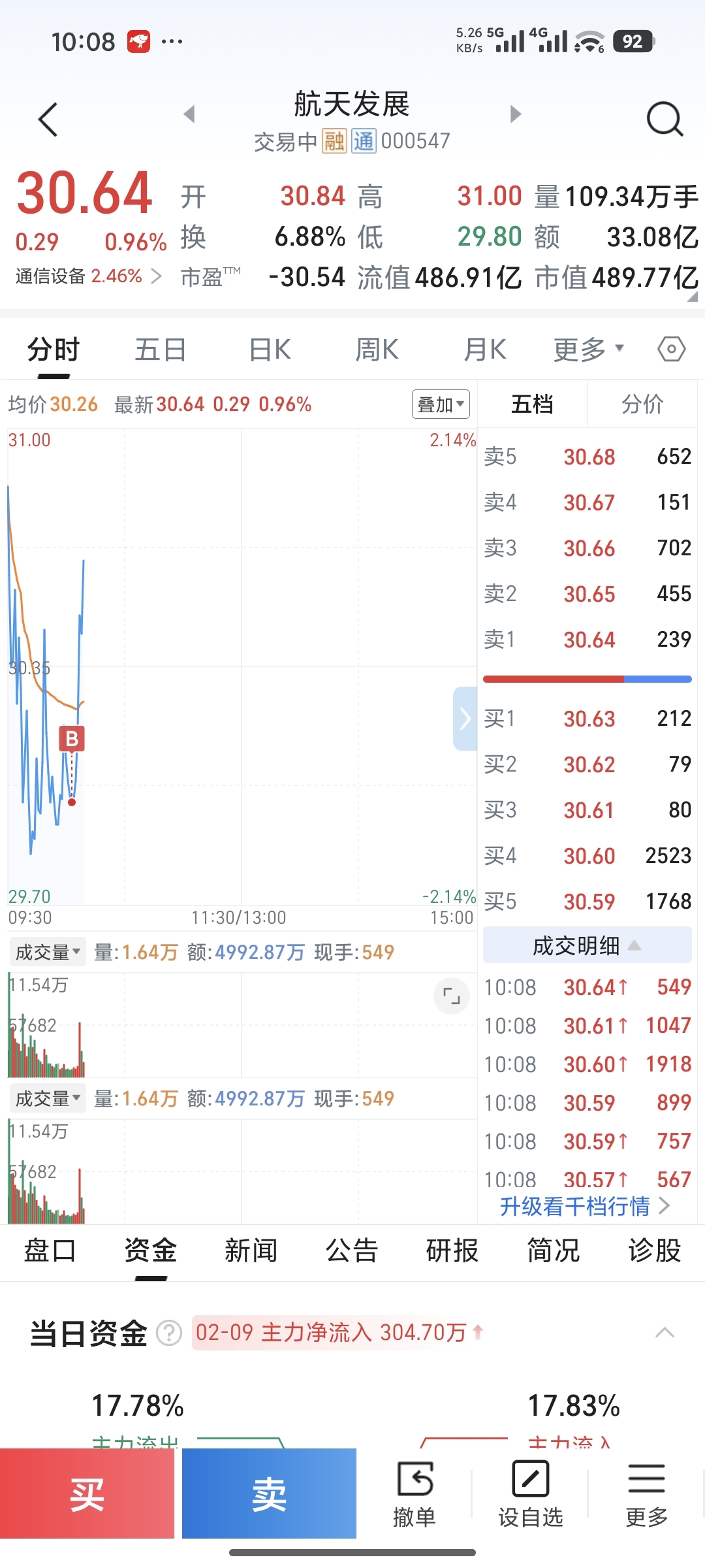 $航天发展(SZ000547)$ 这算抄底成功吗