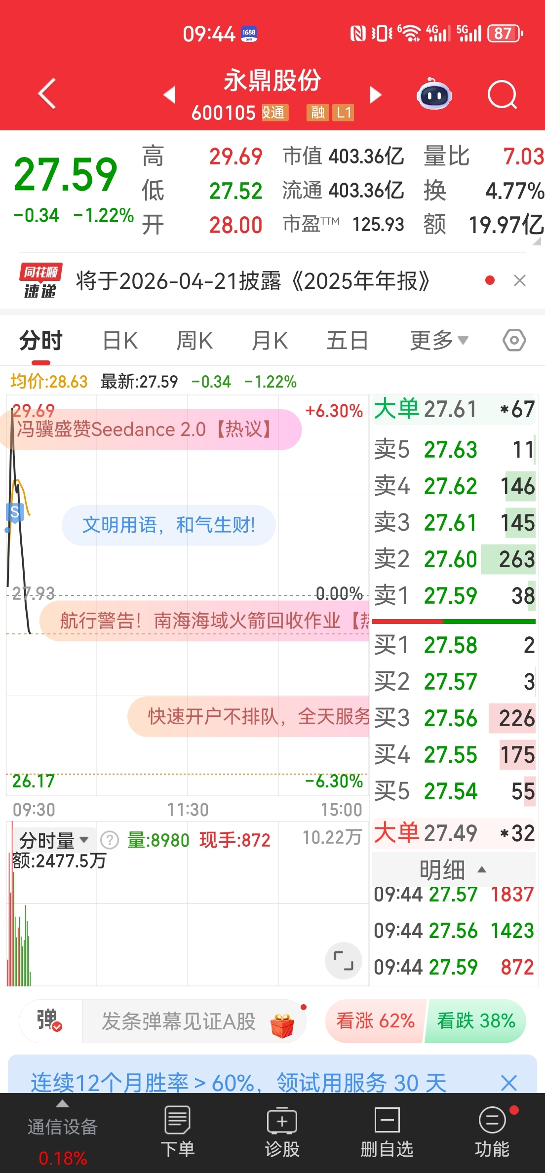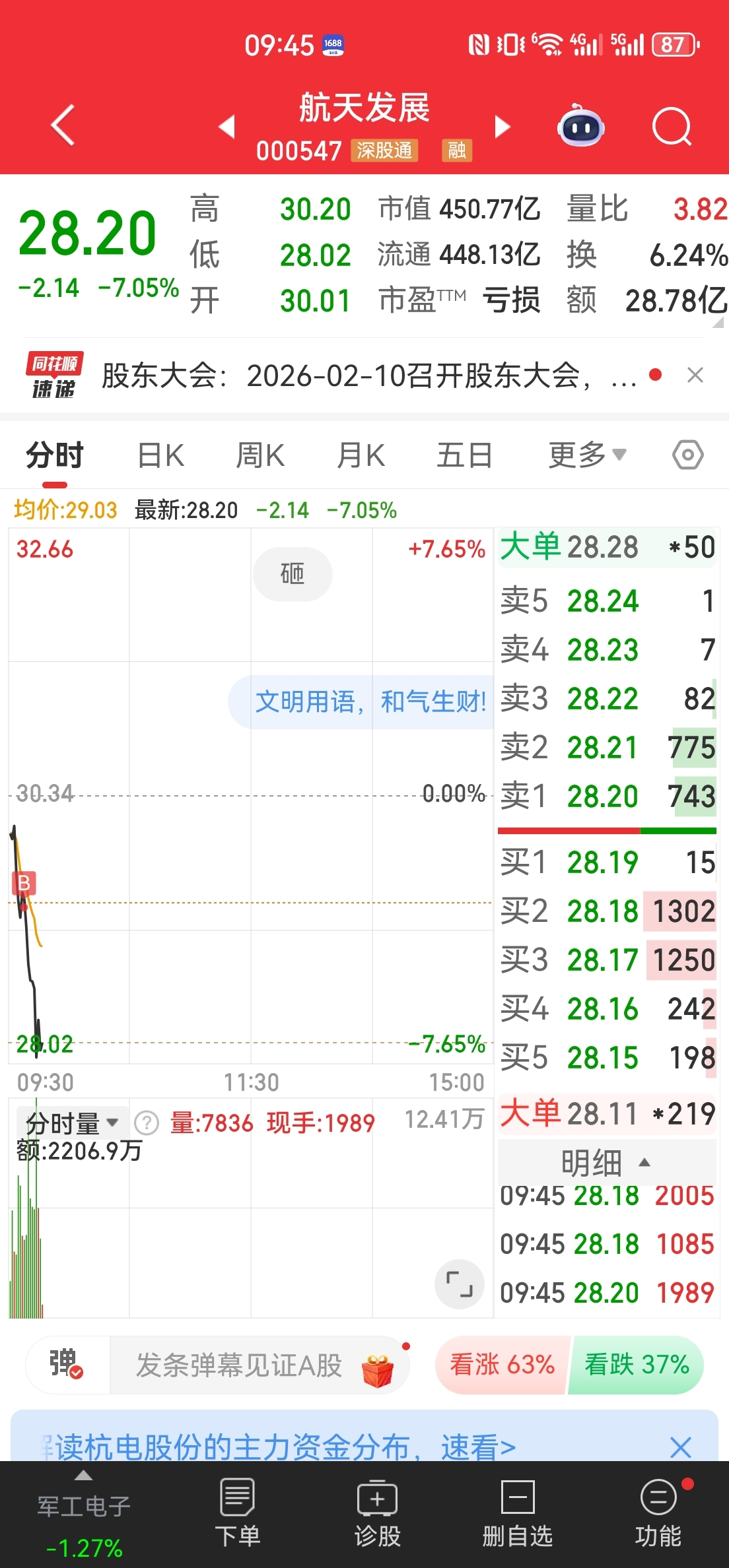 $航天发展(SZ000547)$ 一万到一百万第79天,永鼎2个点走了,-3买了航天发展