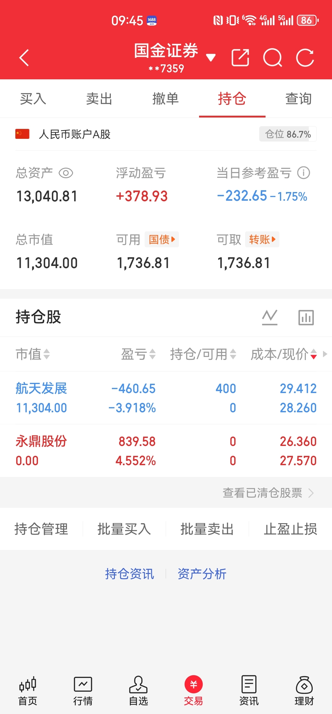 一万到一百万第79天,永鼎2个点走了,-3买了航天发展