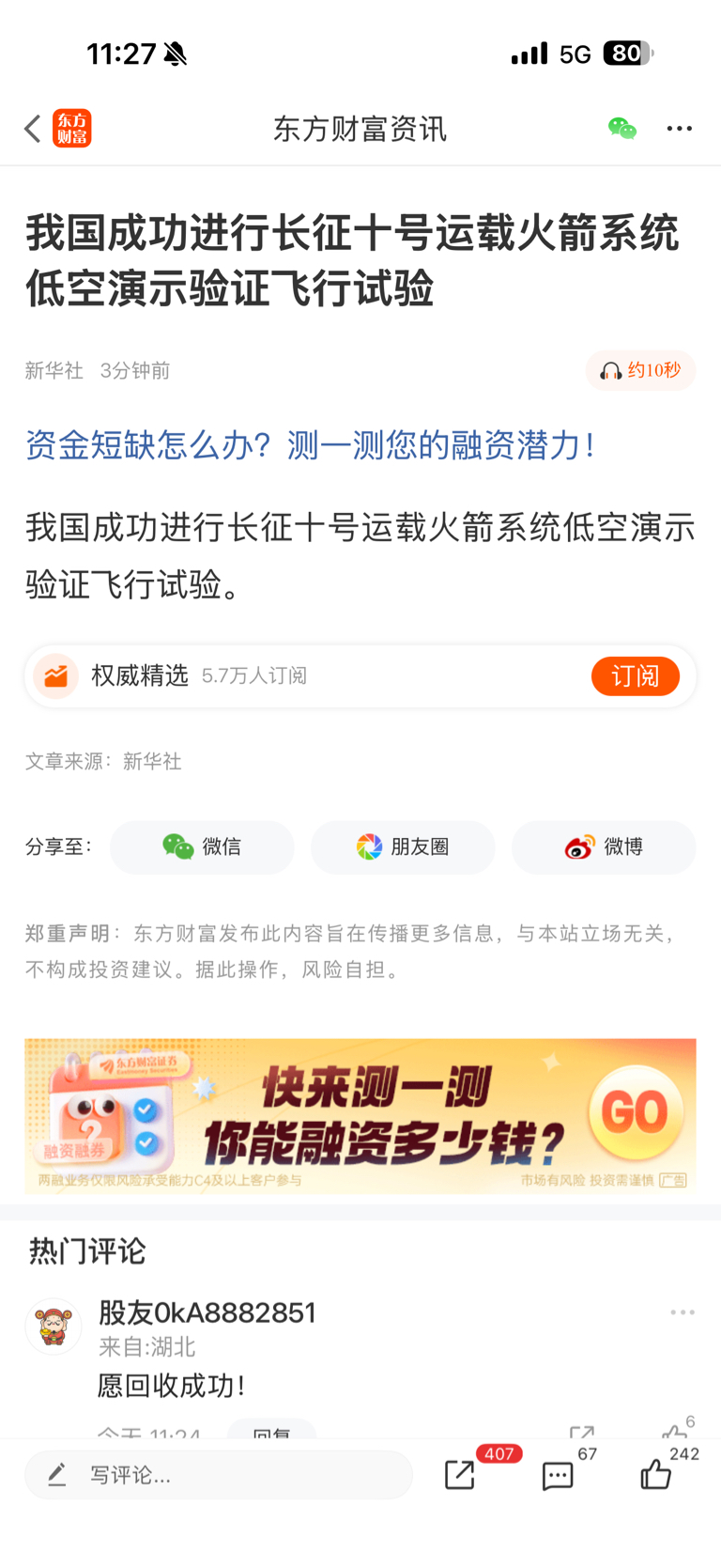 $航天发展(SZ000547)$ 兑现了!兄弟们