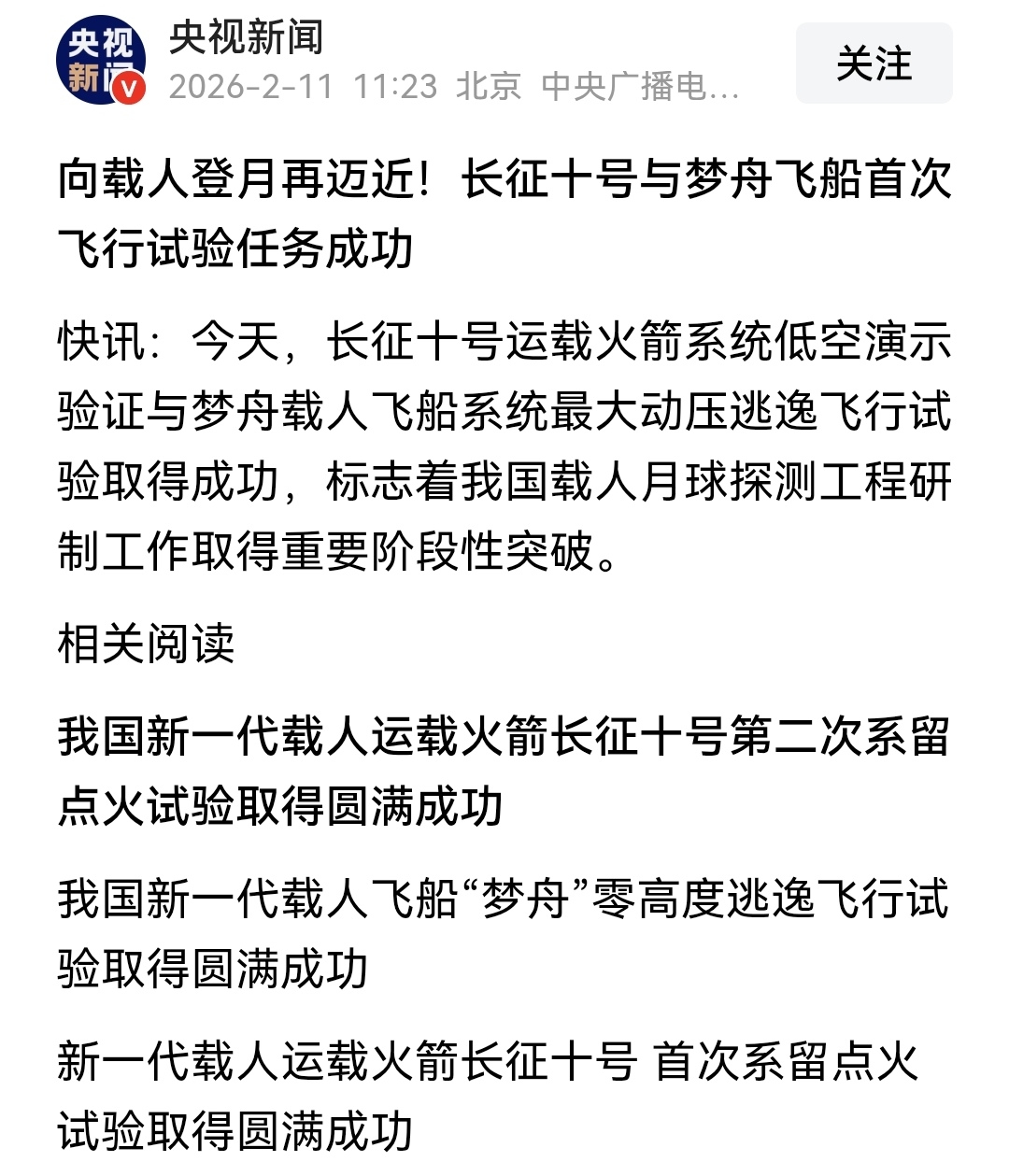 喜讯!我国向载人登月再迈近!长征十号与梦舟飞船首次飞行试验任务成功!