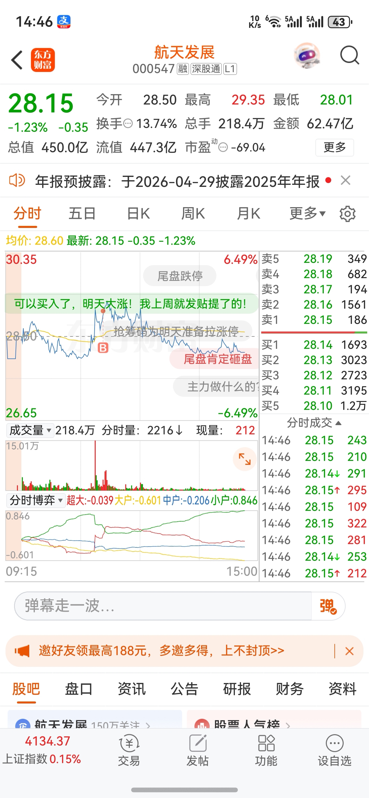 温馨提示: 1.根据《证券法》规定,禁止编造、传播虚假信息或者误导性信息,扰乱证券市场;2.用户在本社区发表的所有资料、言论等仅代表个人观点,与本网站立场无关,不对您构成任何投资建议。用户应基于自己的独立判断,自行决定证券投资并承担相应风险。《东方财富社区管理规定》