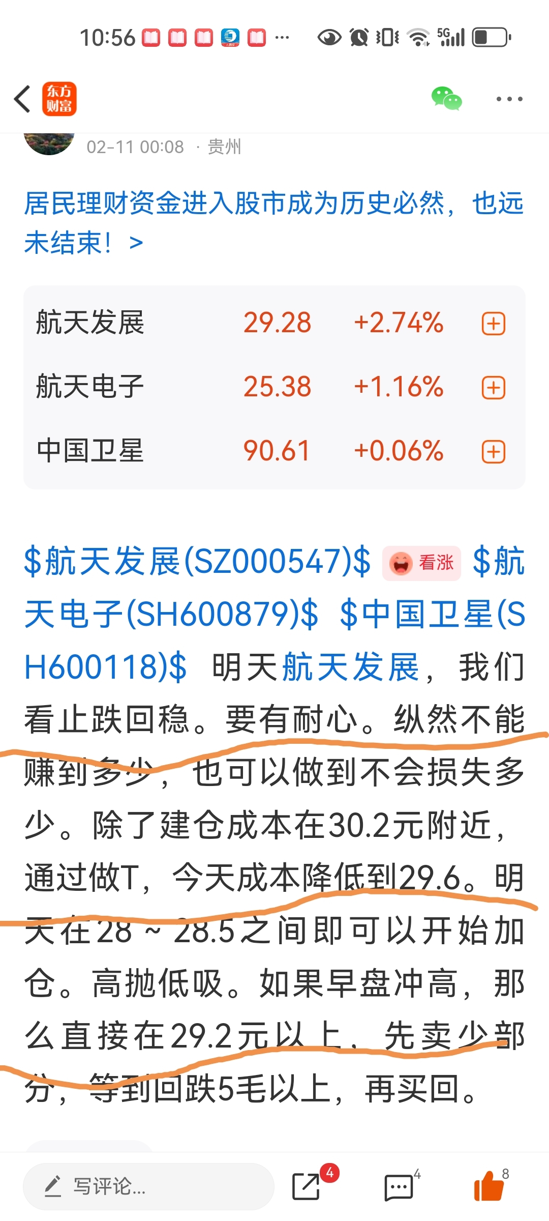 $航天发展(SZ000547)$ $金风科技(SZ002202)$ $中国卫星(SH600118)$ 今天的走势和操作,我在凌晨就发出来了。相信看了的粉丝,损失应该进一步降低。那么明天怎么办?我会在晚上再发来。