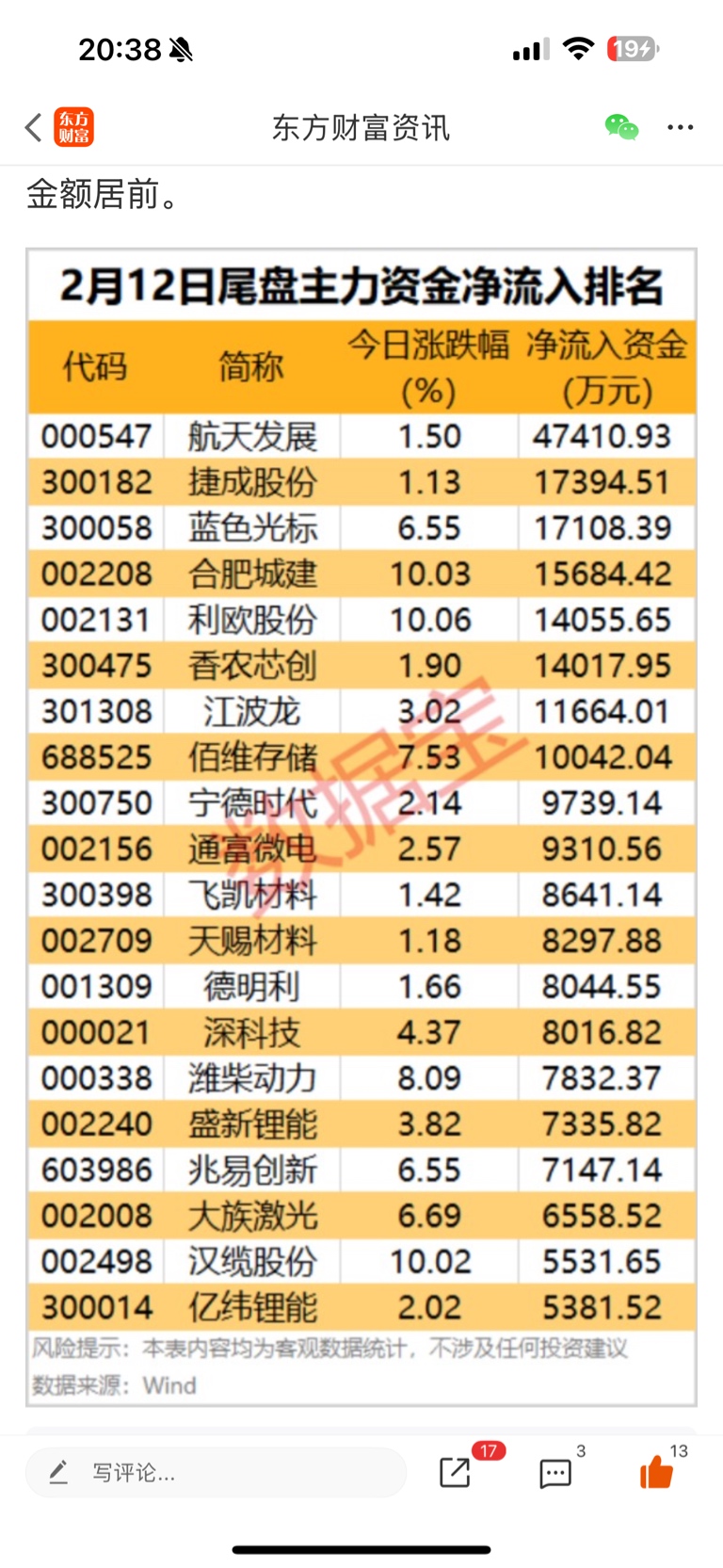 $航天发展(SZ000547)$ 确实牛,净流入4.7个亿
