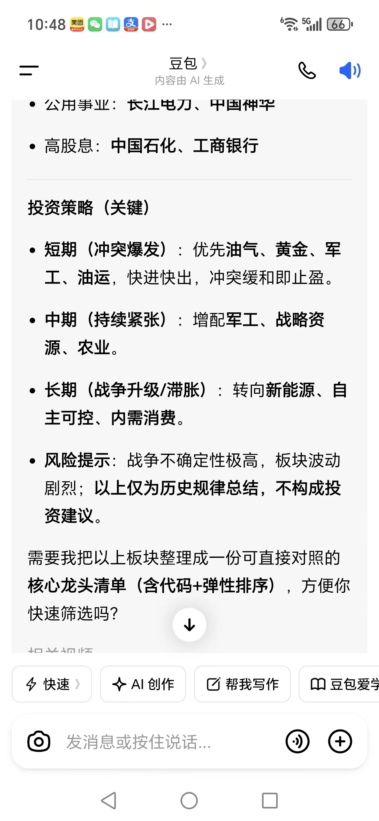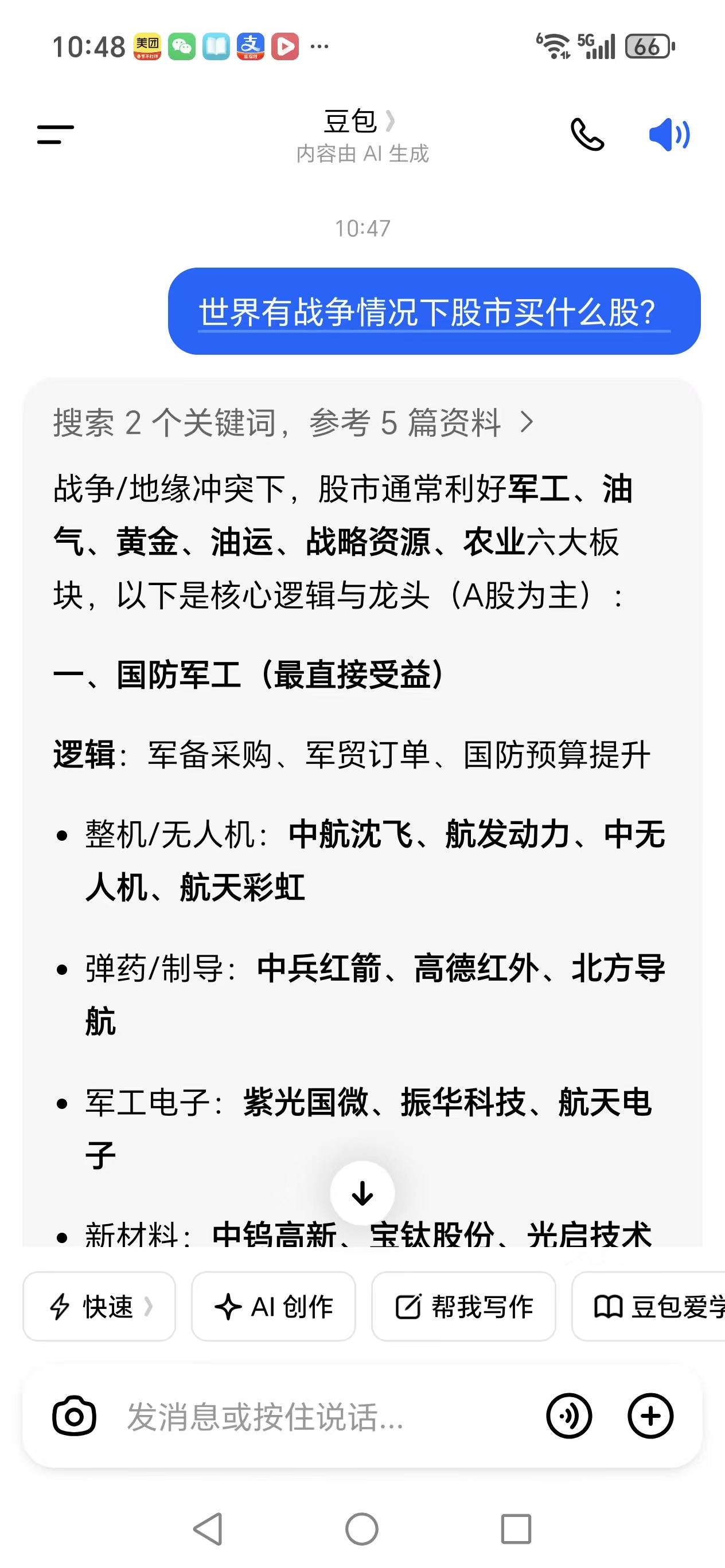 世界历史经验告诉,股市在有战争情况下首先选择军工股;;目前这个局势发展到多久什么程度不知道;;所以短期肯定利好军工股;;而目前军工部是简单拿个枪打,最高层次先进的是航天军工!!