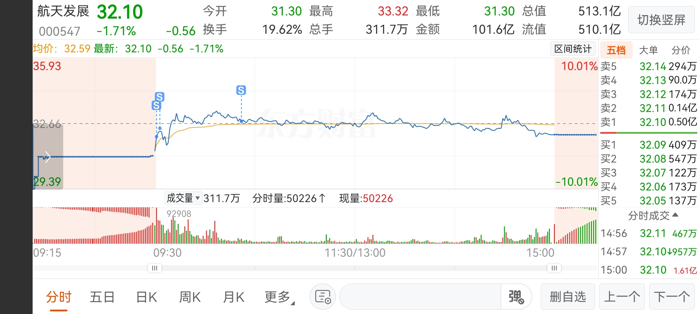 $航天发展(SZ000547)$ 周五进场点火 今天血赚三块