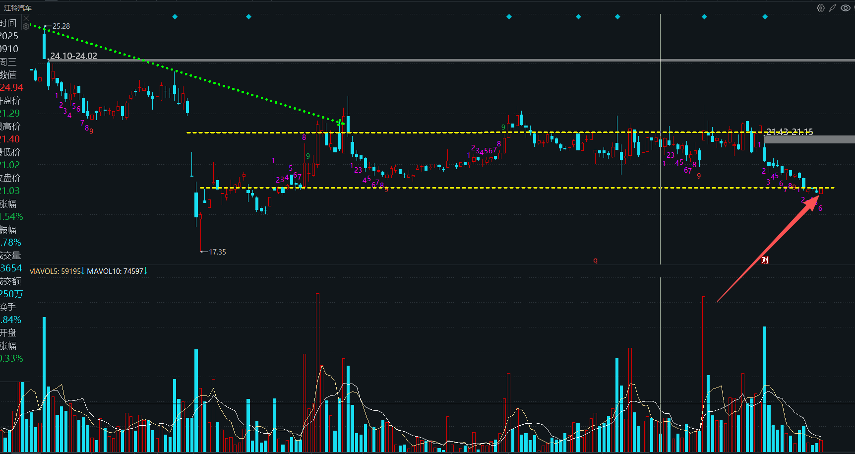 有点要止跌迹像,再看二天看看补不补仓。日线下影线不够长,时线变红没有量,在是在相对底部,手上子弹不多,不太敢补