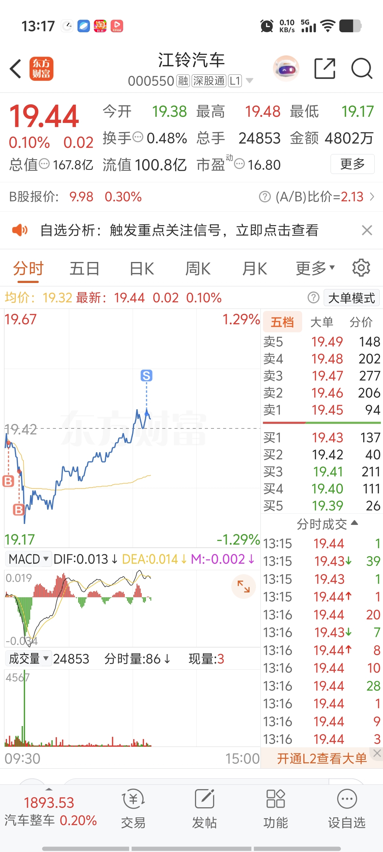 $江铃汽车(SZ000550)$ 今天t了个寂寞,明天调仓过来干