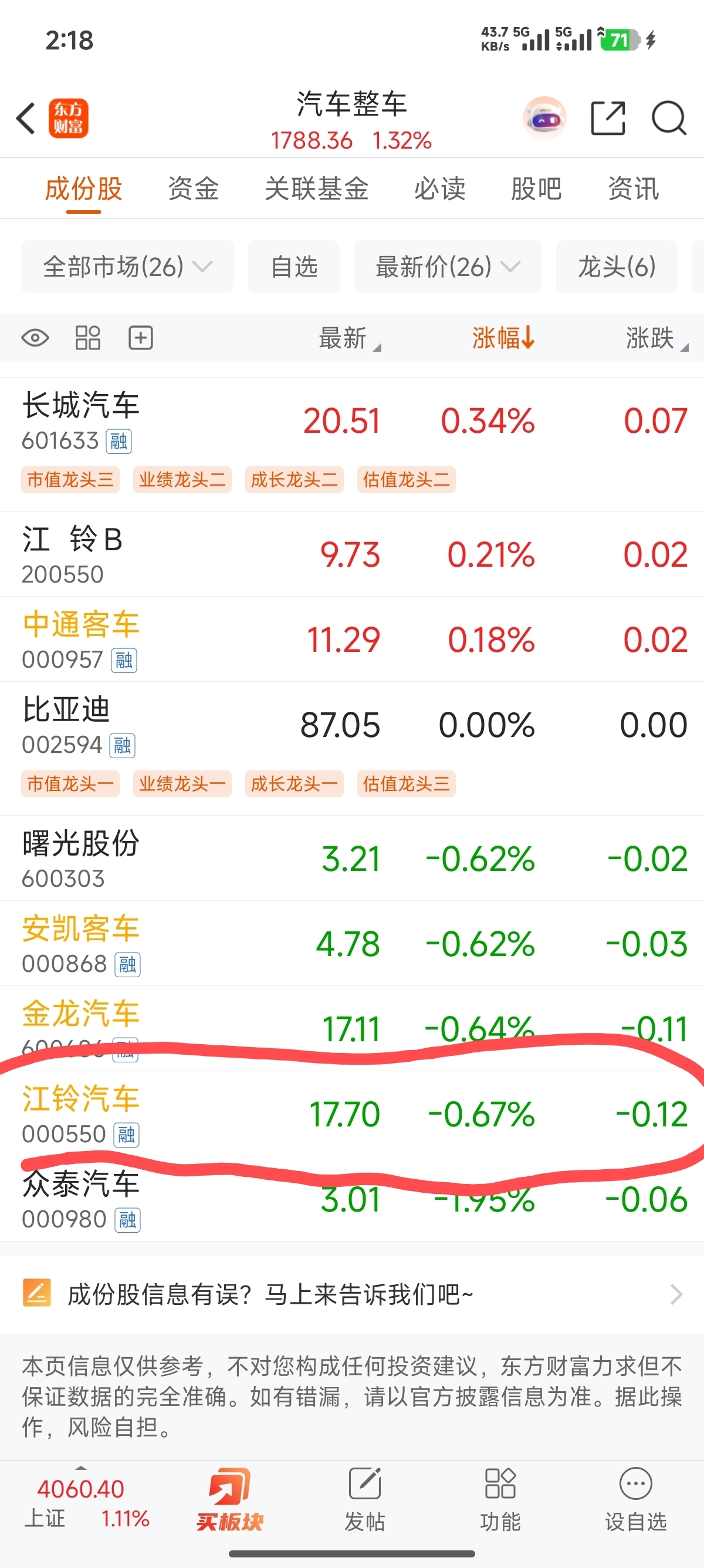 $江铃汽车(SZ000550)$ 怎么还没有跌到板块倒数第一呢?