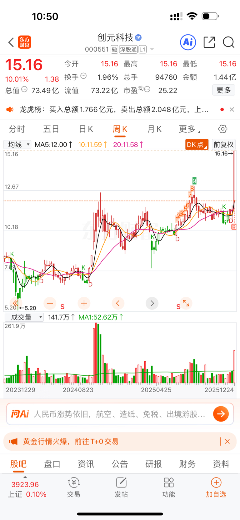 $创元科技(SZ000551)$ 短期到了目标位了,明天不板就走