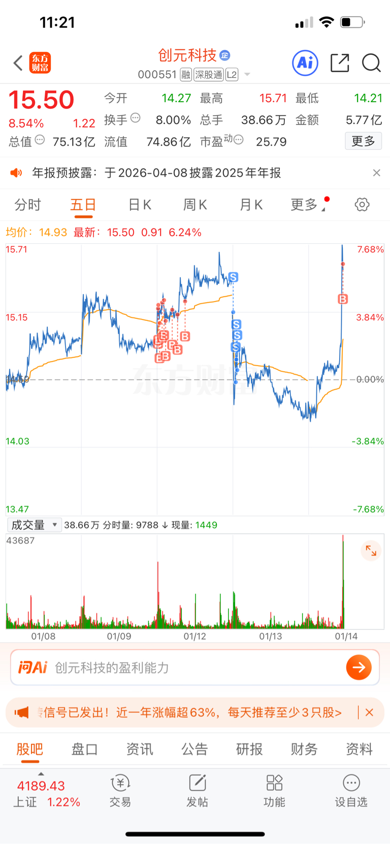 $创元科技(SZ000551)$ 来!再给我上一课!追涨杀跌!