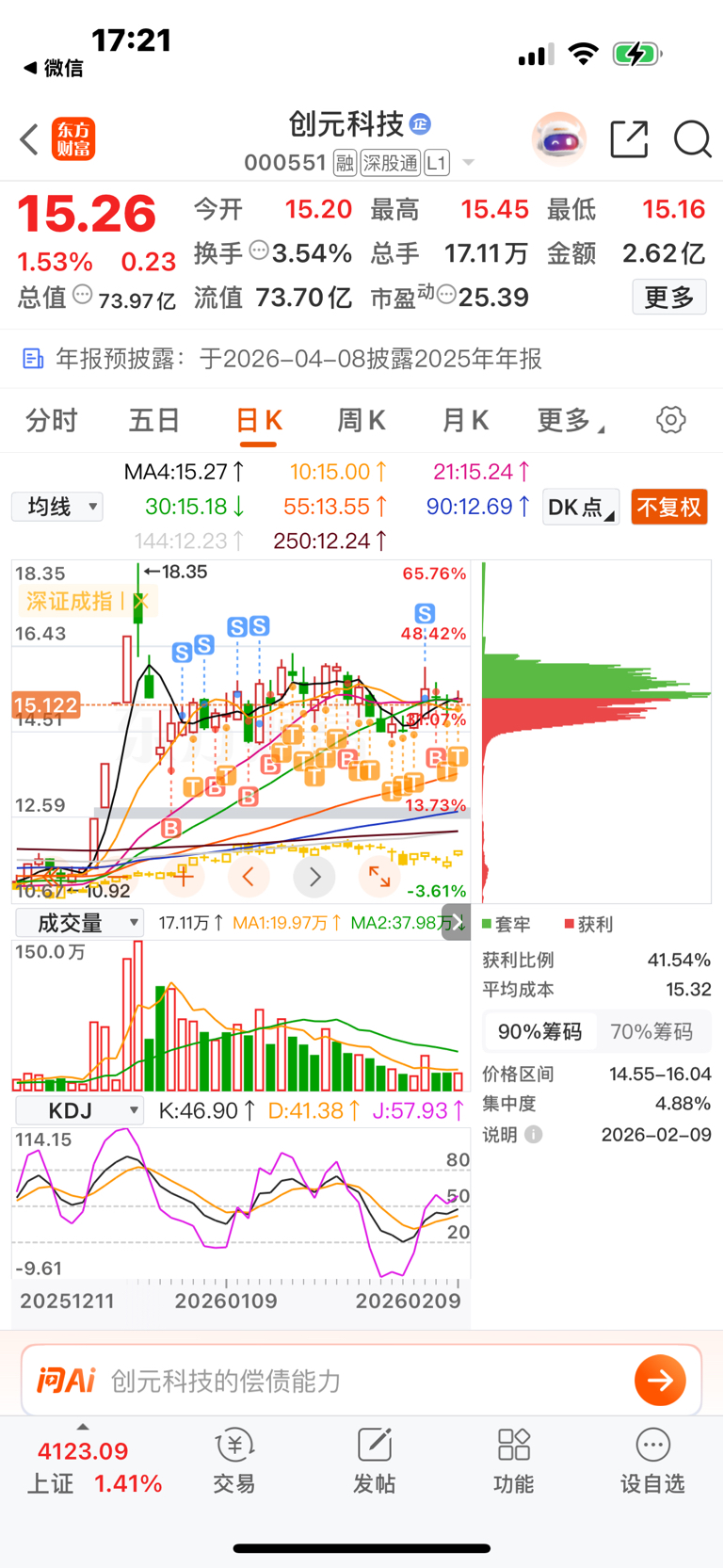 $创元科技(SZ000551)$ 在这张票上,一共操作了五波,每一波都赚钱了,现在成本是15.12元,节前这三天争取把成本降到15元以下,墙压力为16元,不离不弃,准备持仓过节