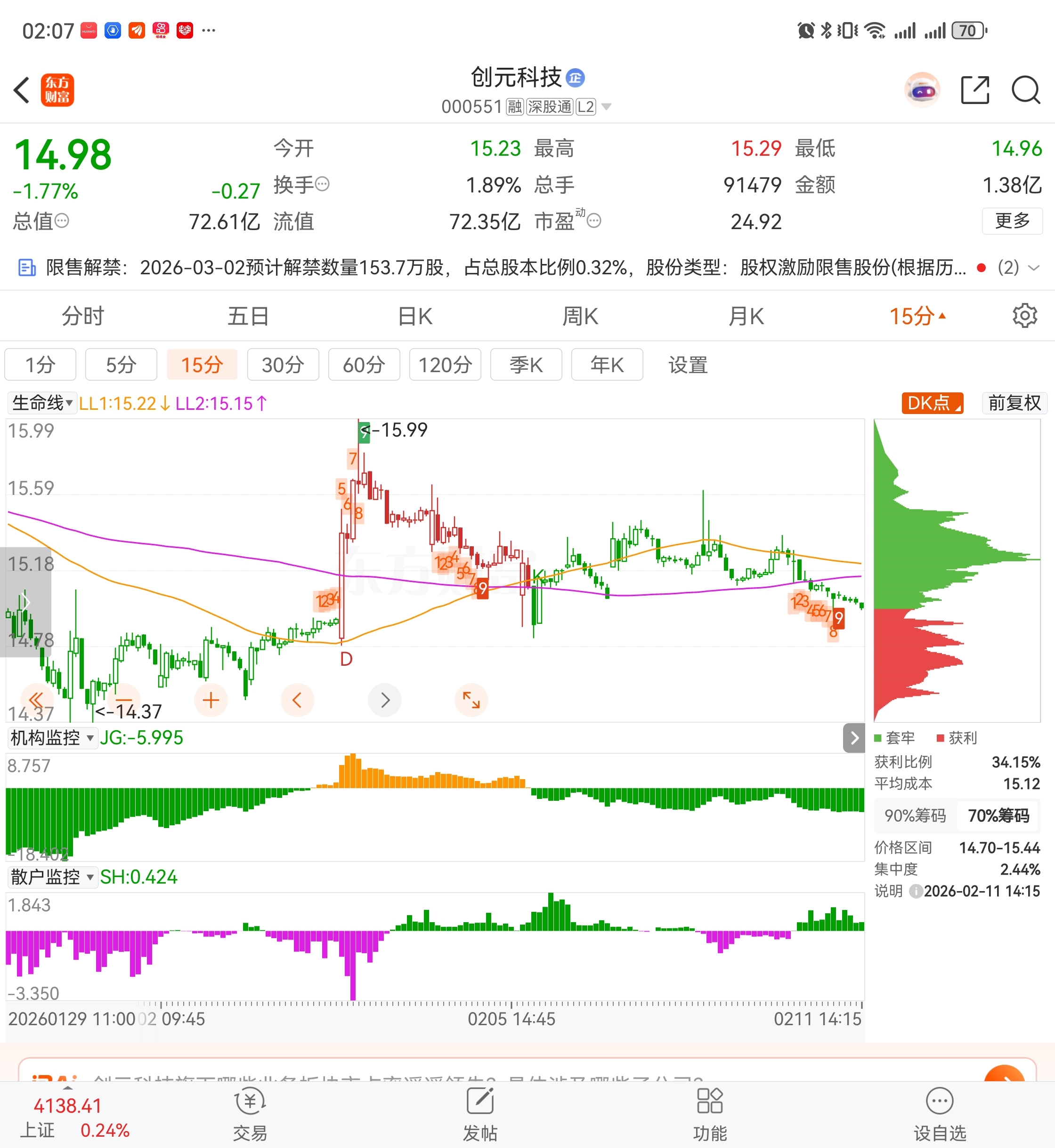$创元科技(SZ000551)$ 机构在卖,散户在买