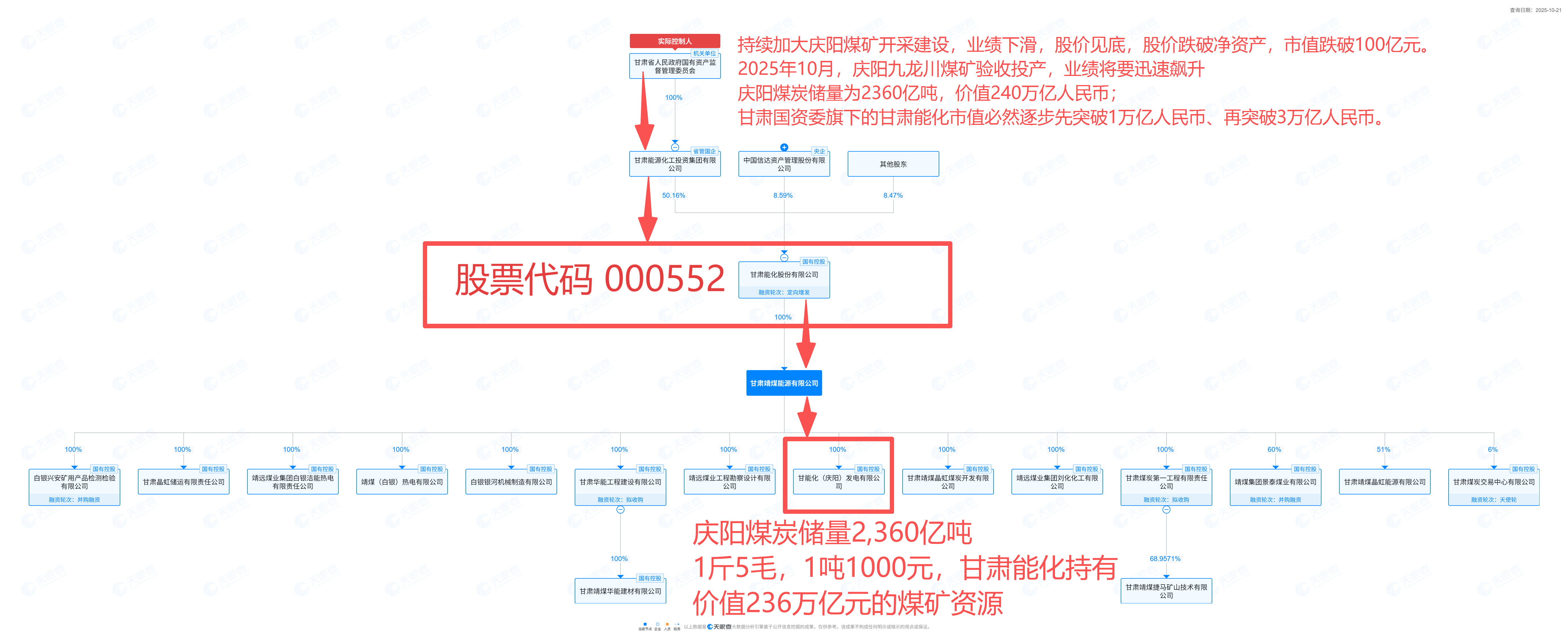甘肃能化(SZ000552)持有庆阳煤矿矿区2360亿吨的煤炭探矿及开采资源,目标股价会【翻100倍】到【200倍】么?甘肃能化全资子公司九龙川煤矿2025年10月正式开始采煤销售,多年的投资亏损,将会依靠迅速爆发增长填补。