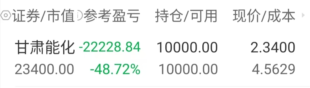 $甘肃能化(SZ000552)$ 大盘4000点了,这个LJ还套我49%,持仓中最LJ的一只了。