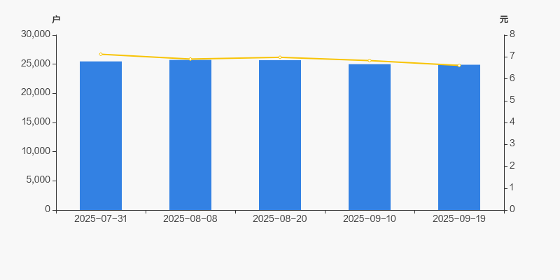 自2025年8月8日以来,公司股东户数连续3期下降,截至目前减幅为3.20%。2025年8月8日至2025年9月19日区间股价下降4.20%。