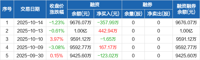 安道麦A:融资净偿还357.99万元,融资余额9676.07万元(10-14)