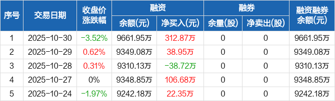 安道麦A:融资净买入312.87万元,融资余额9661.95万元(10-30)